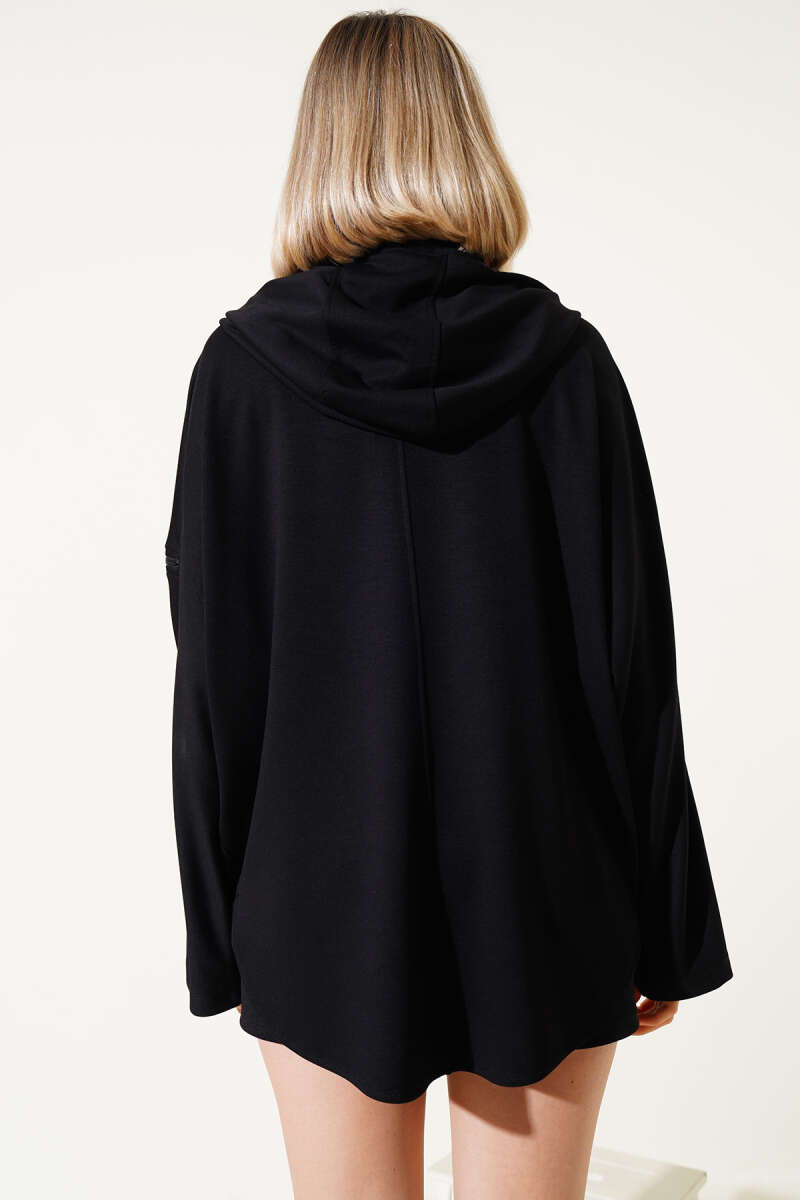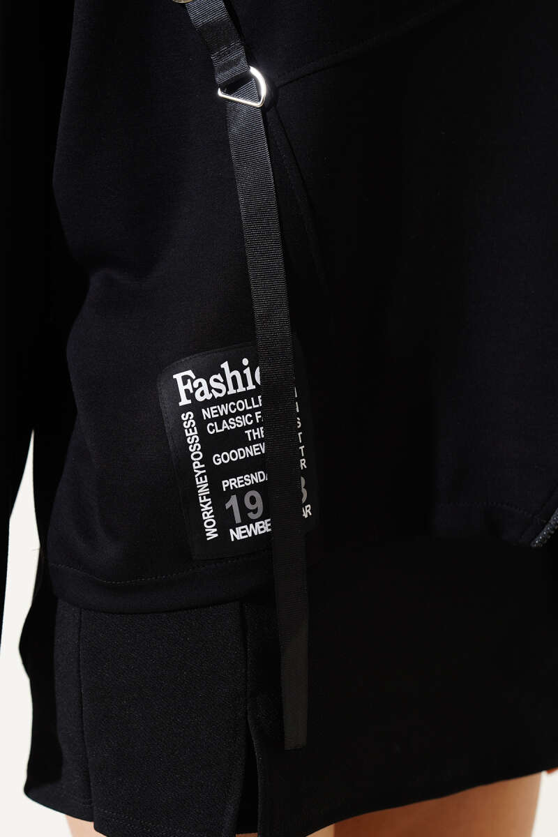Çoban Dikiş Detaylı Triko Tunik Siyah