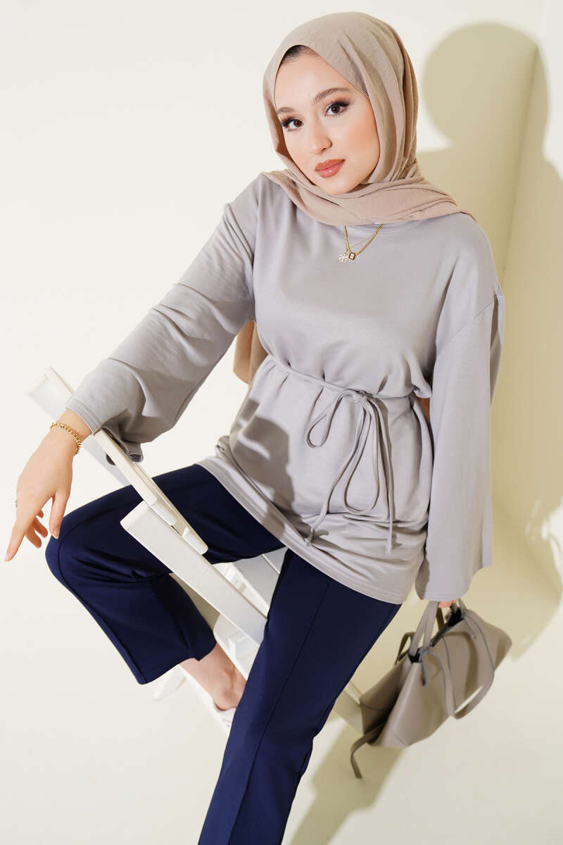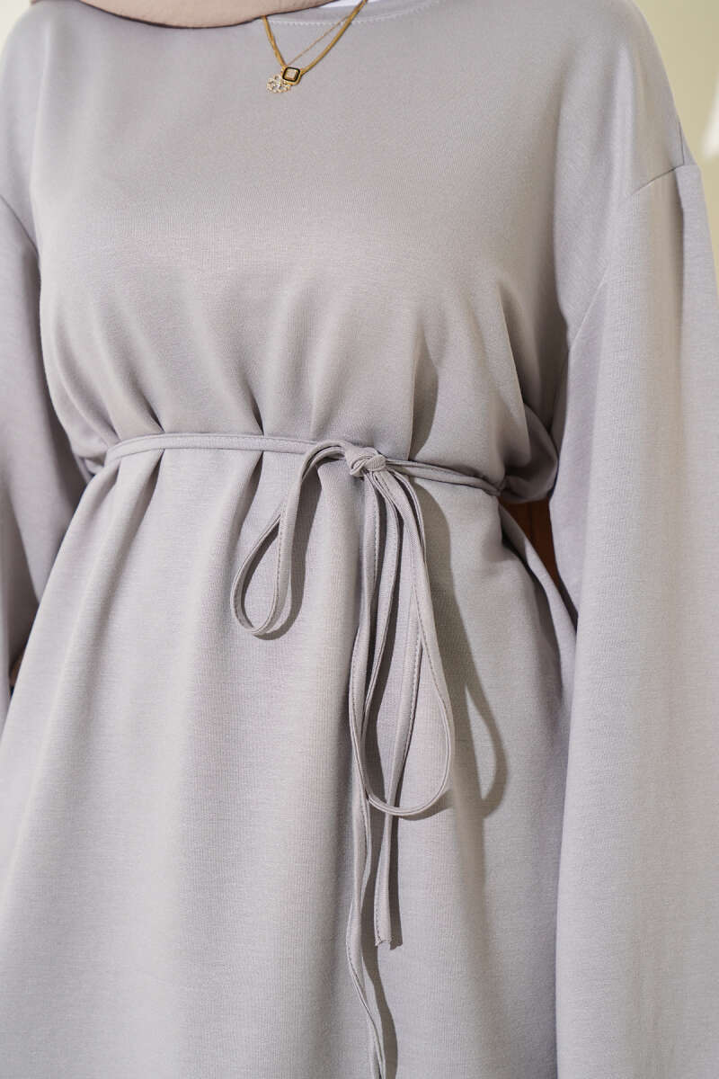 Loyşa Geniş Kollu İp Kuşaklı Tunik Gri