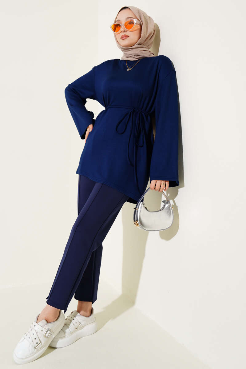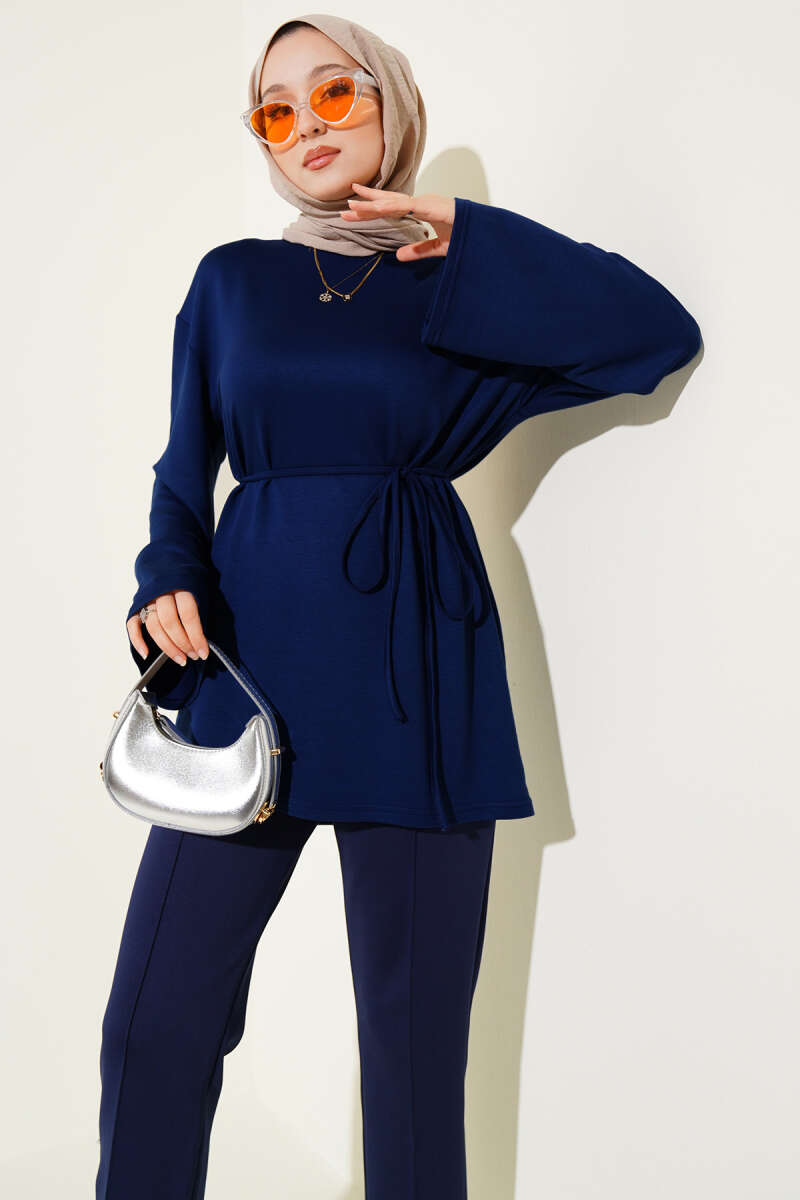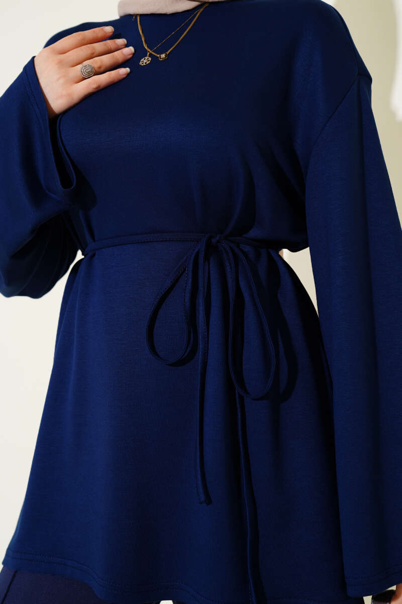 Loyşa Geniş Kollu İp Kuşaklı Tunik Lacivert