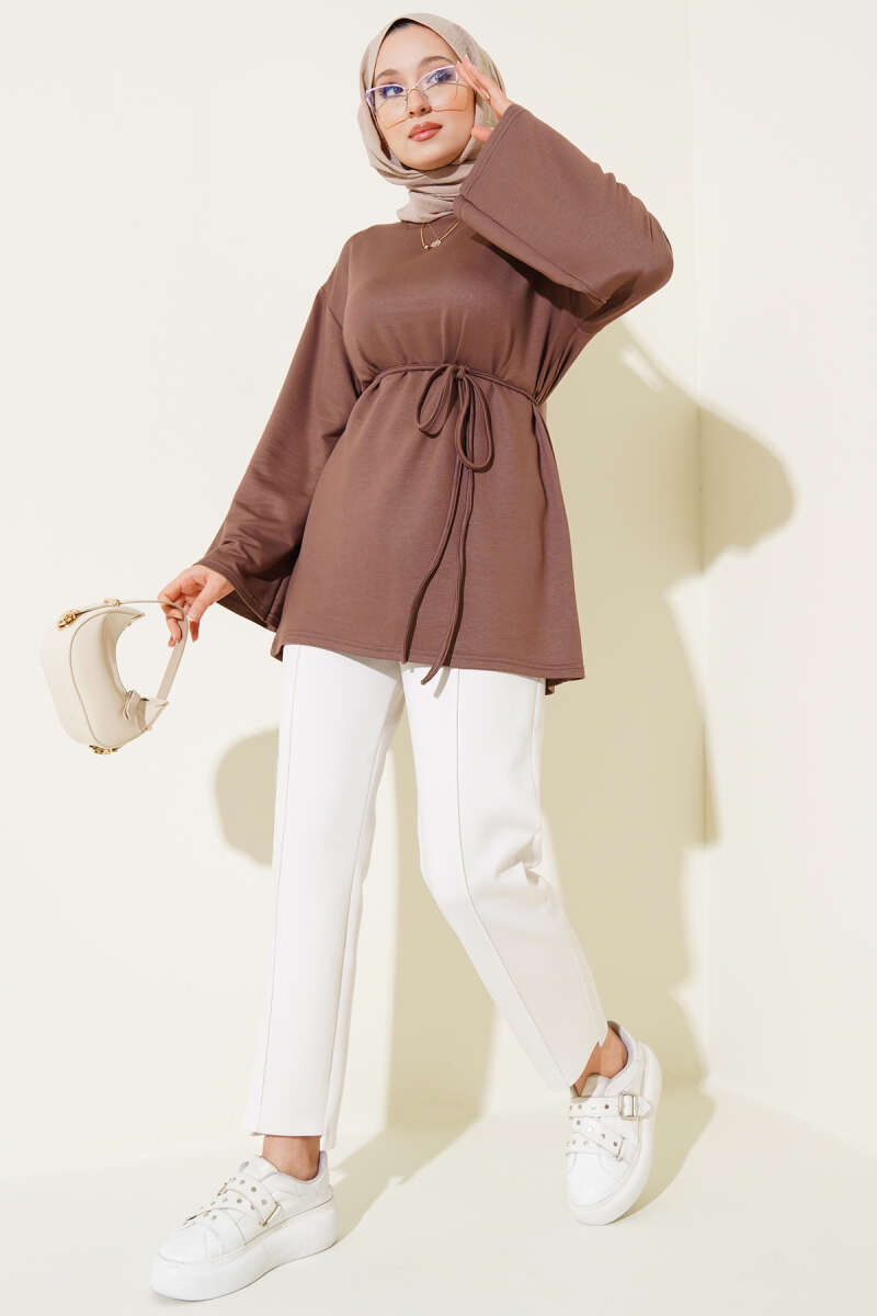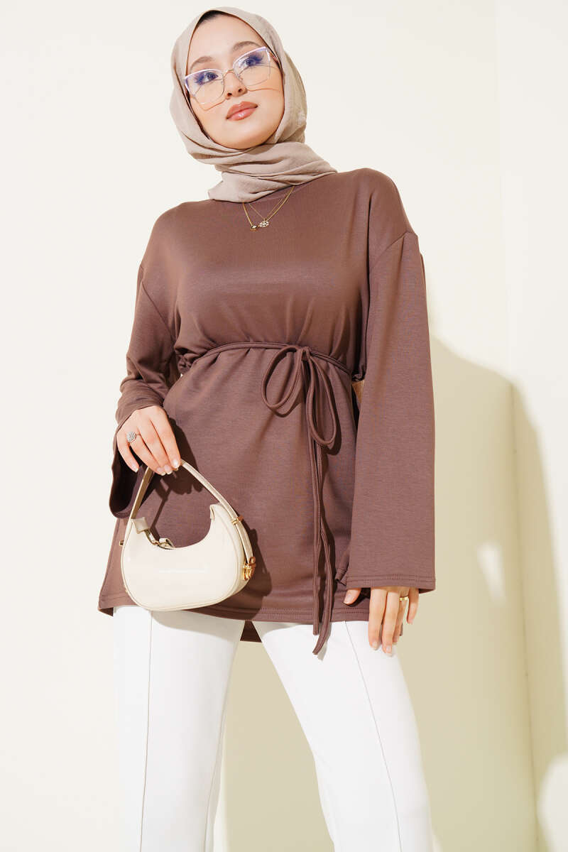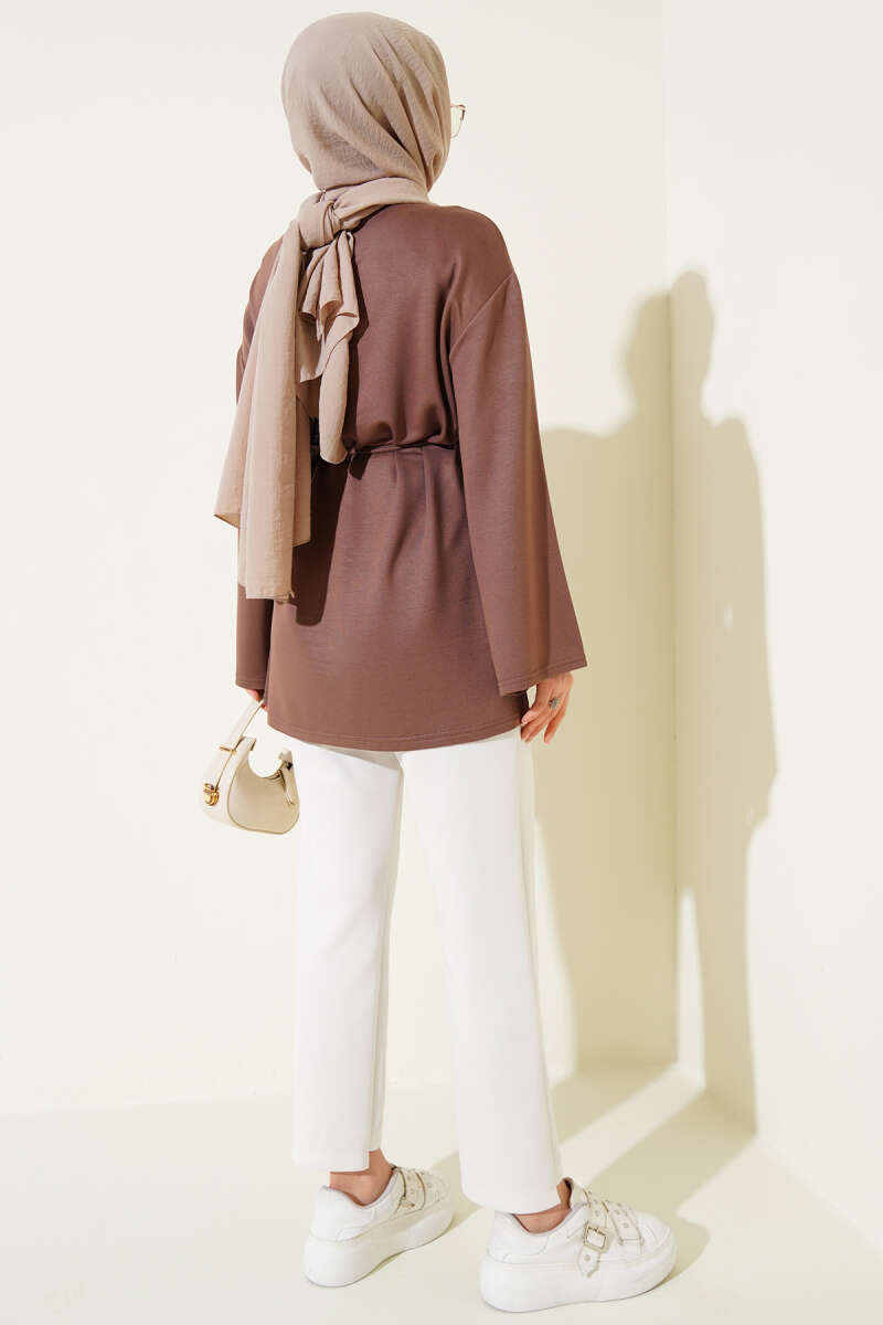Loyşa Geniş Kollu İp Kuşaklı Tunik Tarçın