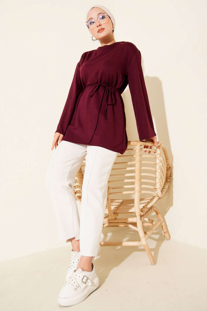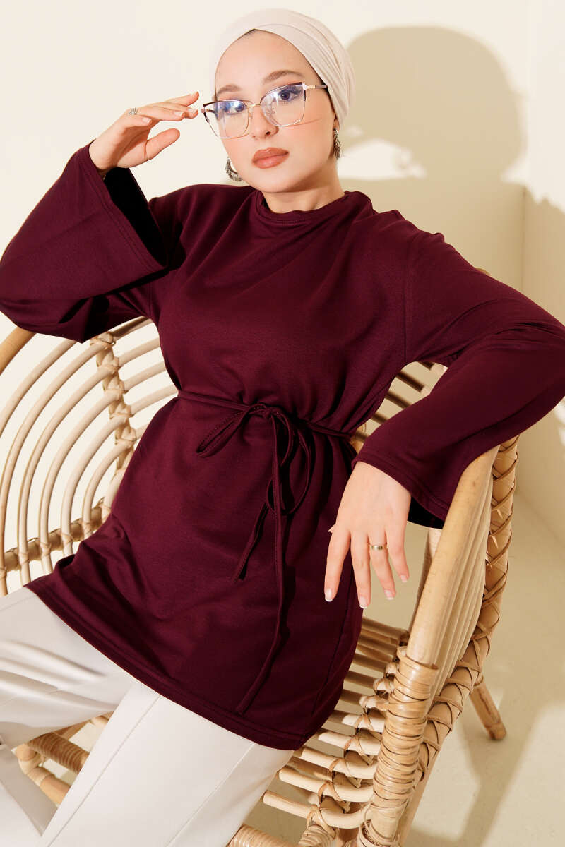 Loyşa Geniş Kollu İp Kuşaklı Tunik Vişne