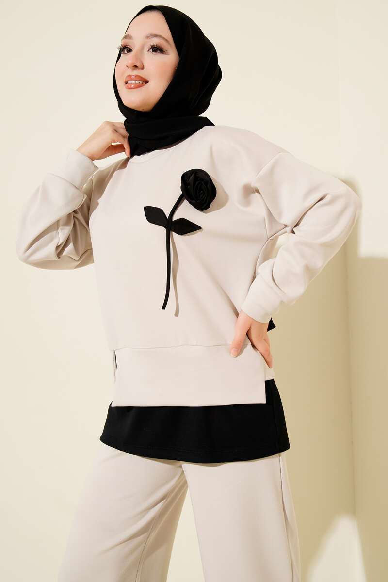 Beli Tünelli Fermuarlı Scuba İkili Takım Bej