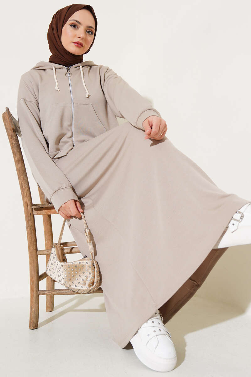 Önü Bağcık Detaylı Etekli İkili Takım Bej