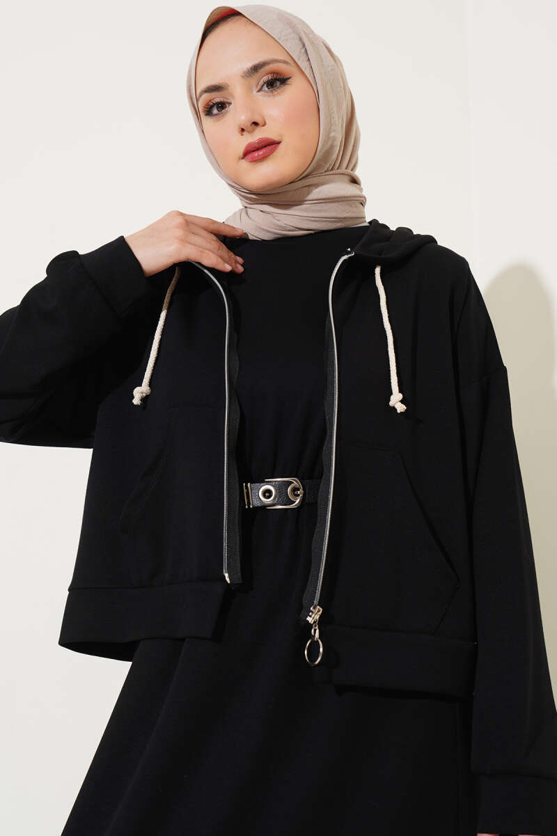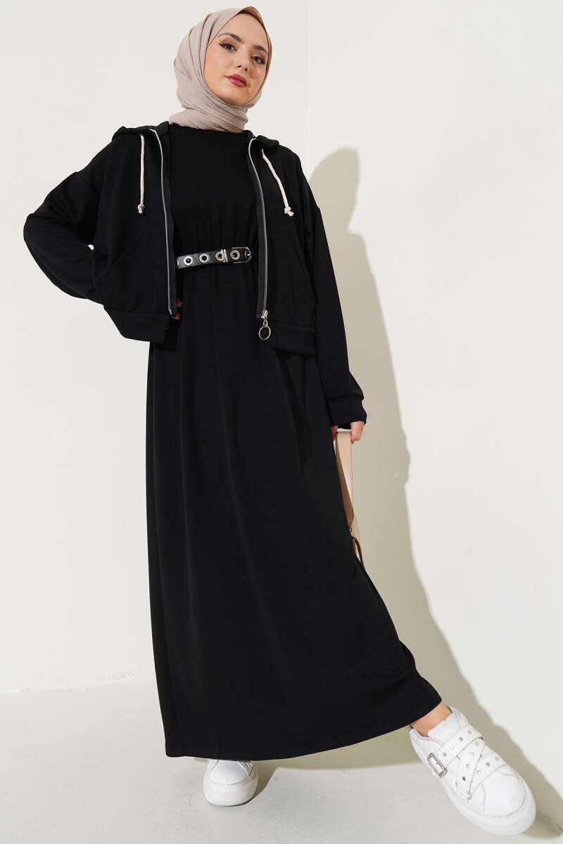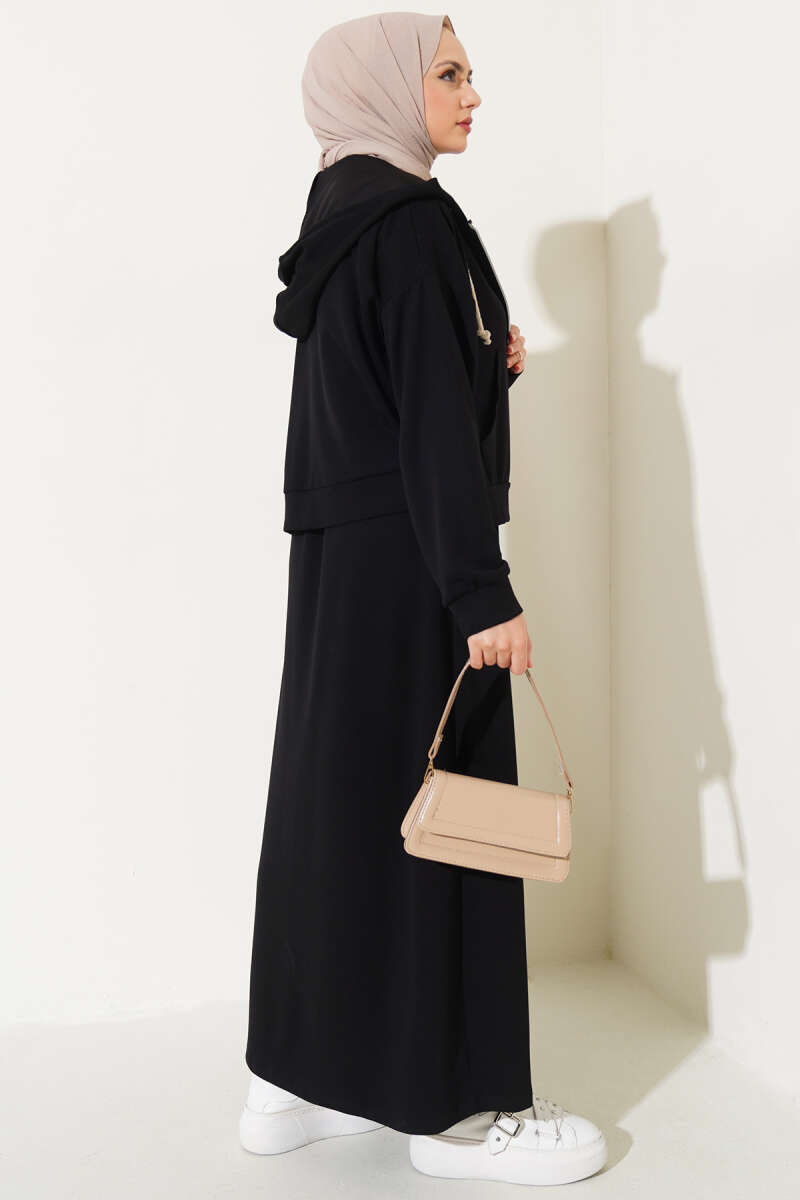 Loyşa Hırkalı Elbise İkili Takım Siyah