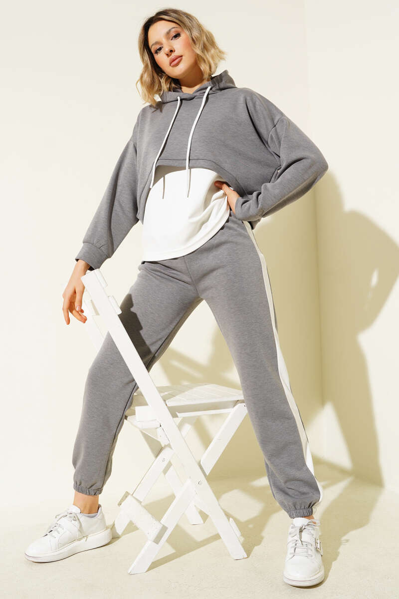 Loyşa İçlikli Üçlü Takım Gri