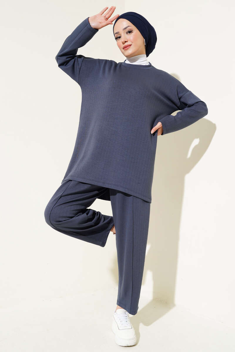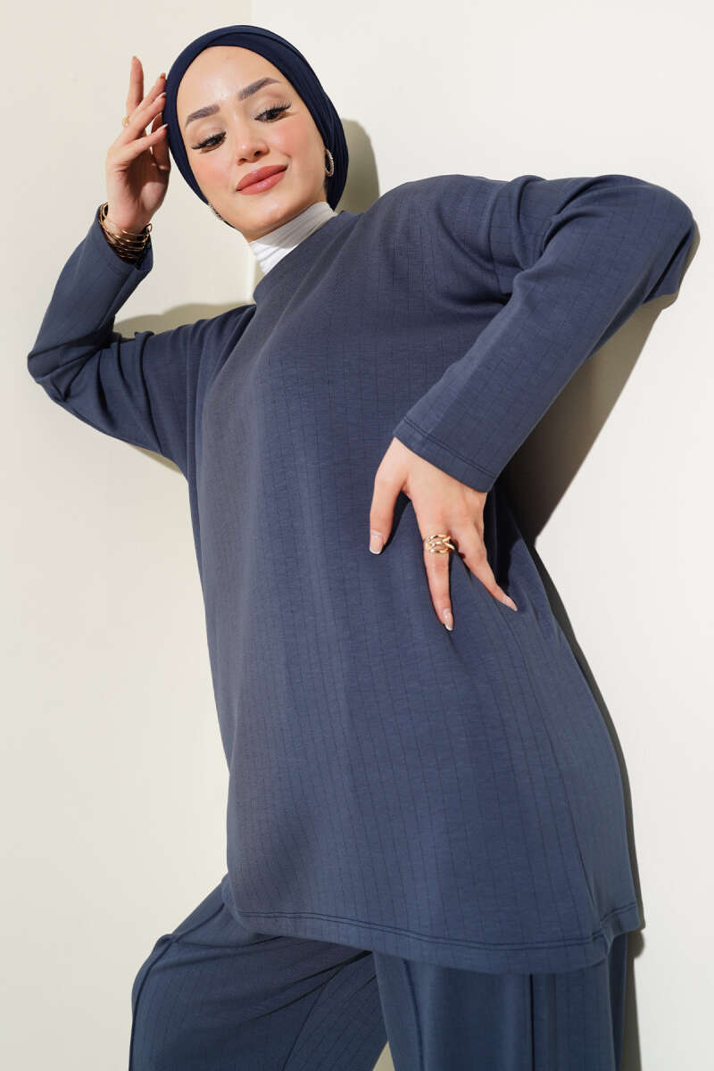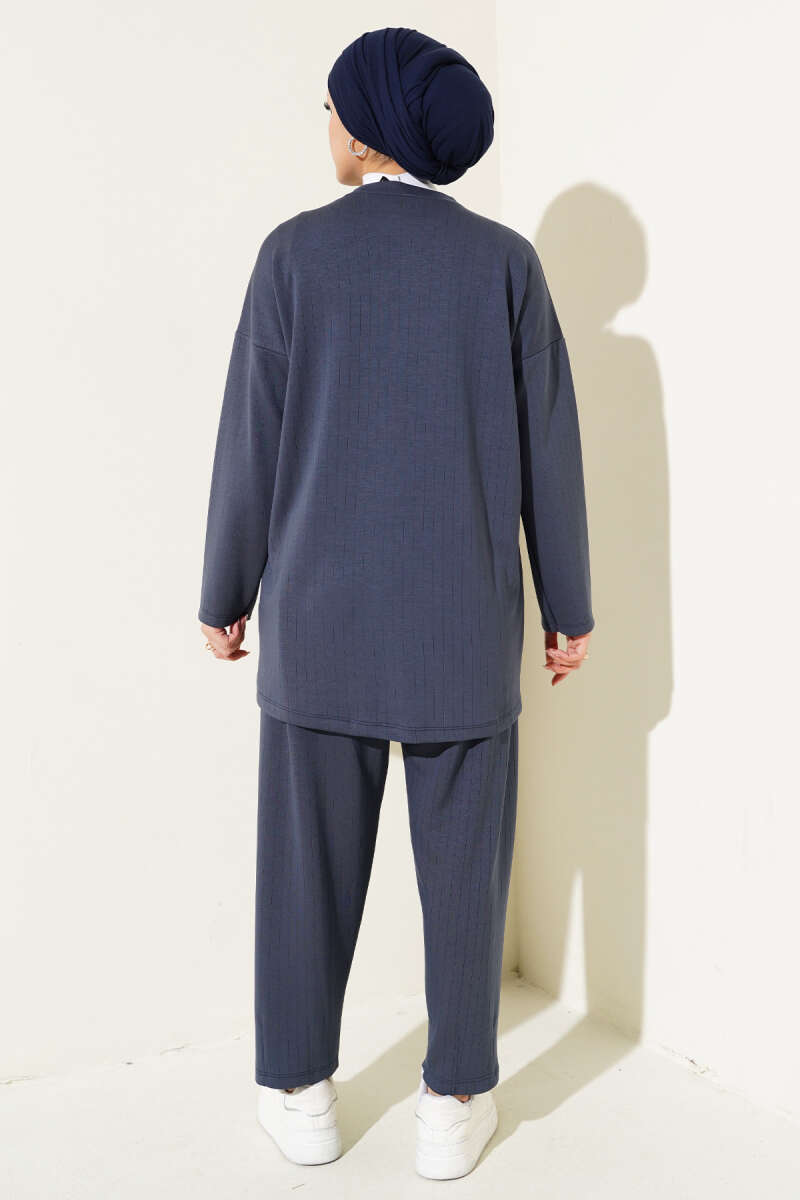 Yan Kemerli Düğmeli İkili Takım Mavi