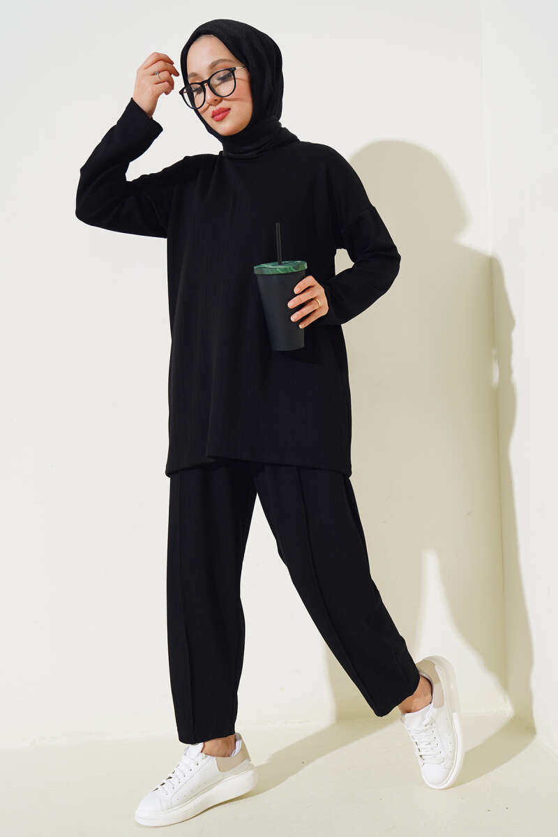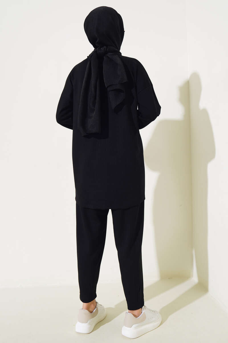 Fermuarlı Yandan Cepli İkili Takım Siyah