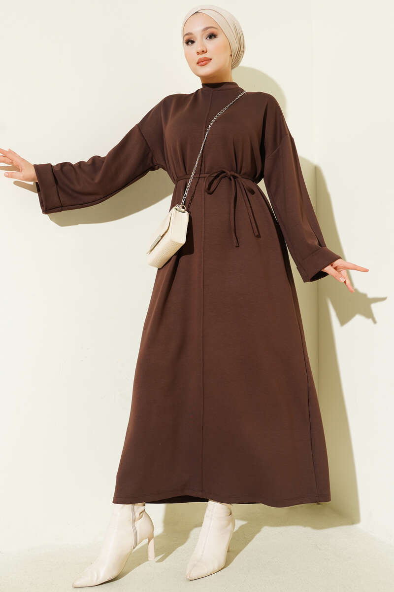 Loyşa İp Kuşaklı Duble Kol Elbise Bordo
