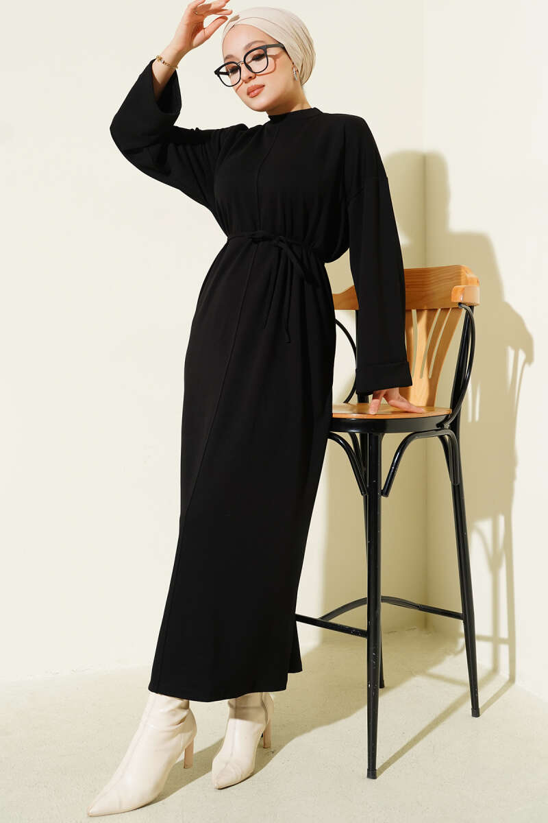 Loyşa İp Kuşaklı Duble Kol Elbise Lacivert