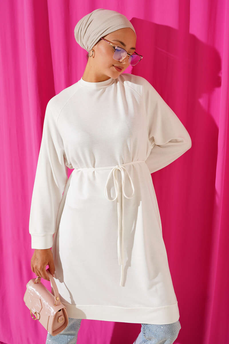 Loyşa İp Kuşaklı Uzun Tunik Ekru