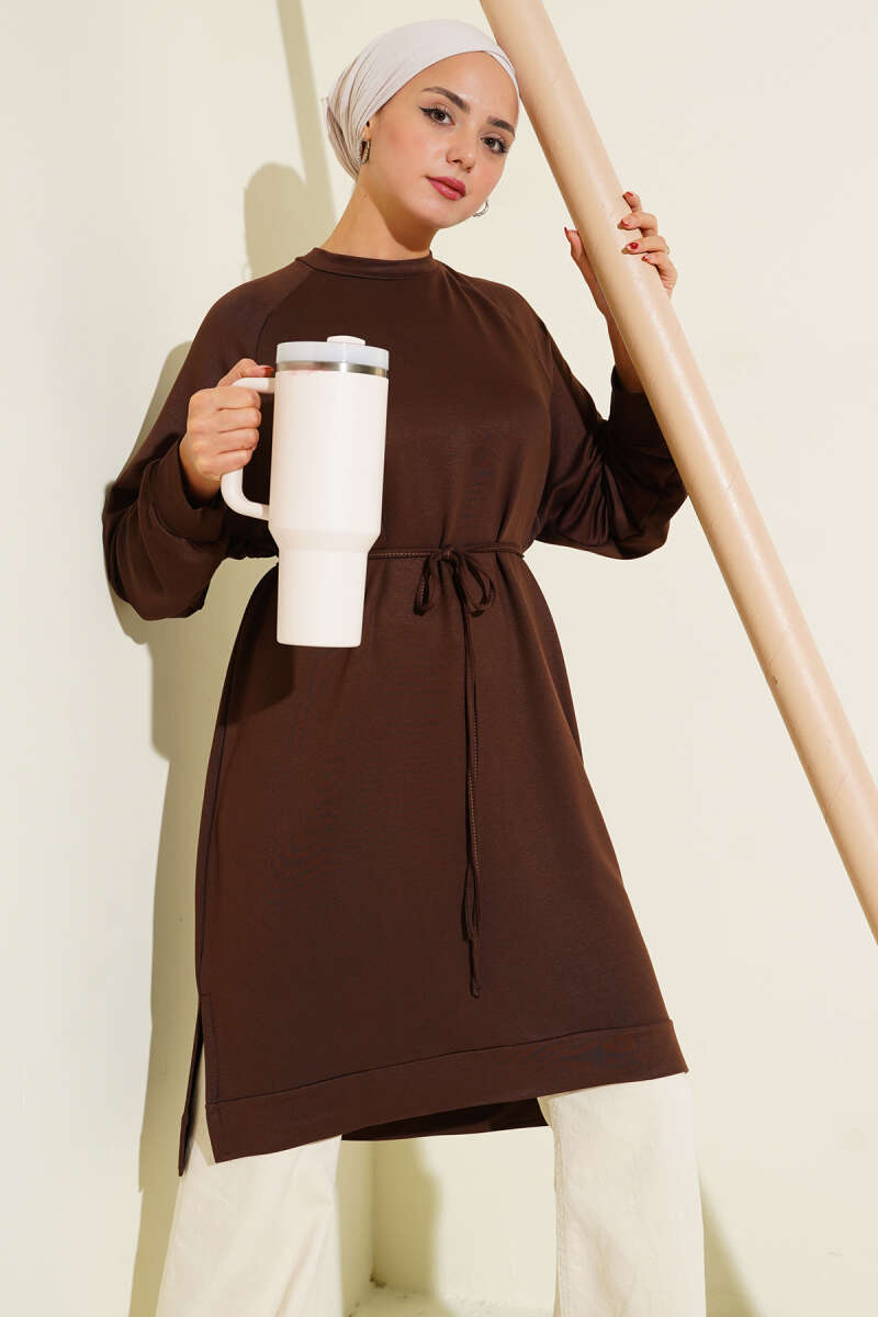 Loyşa Düşük Omuz Basic Tunik Kahve