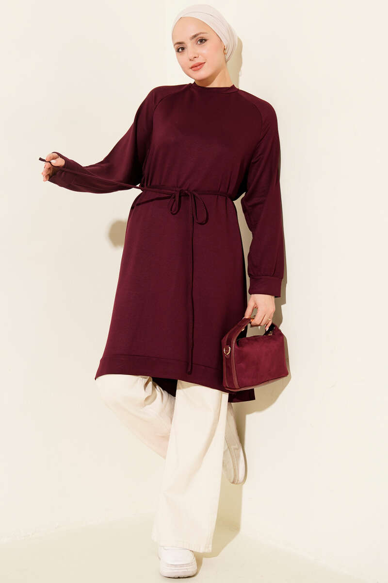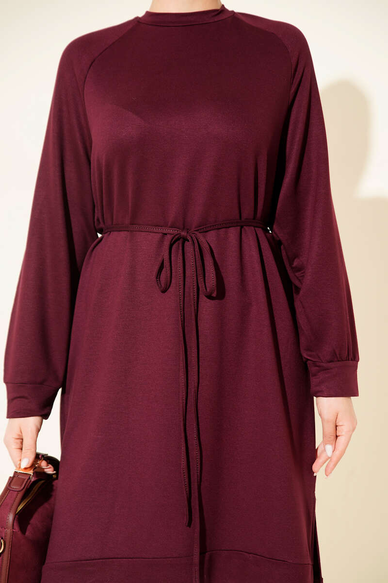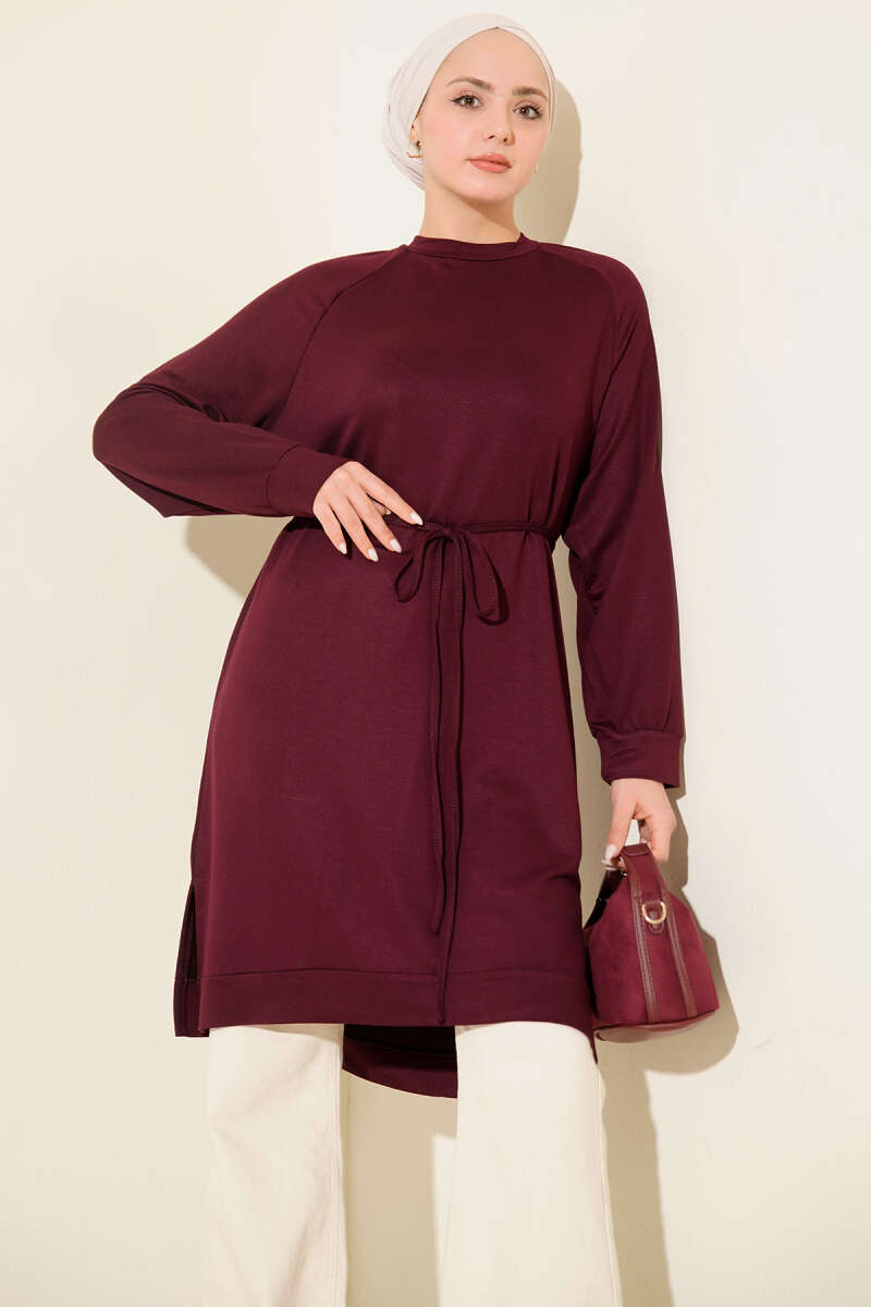 Loyşa İp Kuşaklı Uzun Tunik Mürdüm