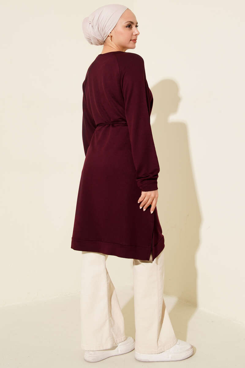 Loyşa Geniş Kollu İp Kuşaklı Tunik Bordo
