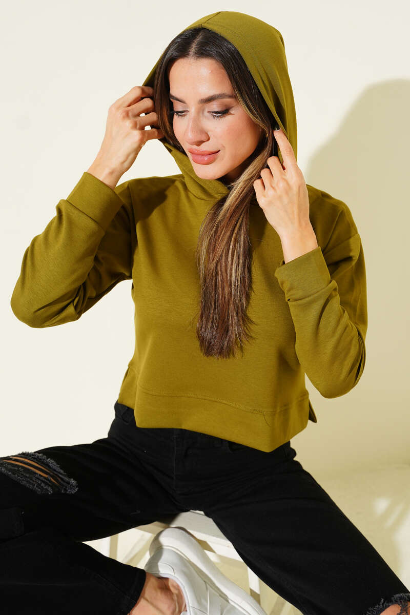 Loyşa Kapüşonlu Kısa Sweatshirt Siyah