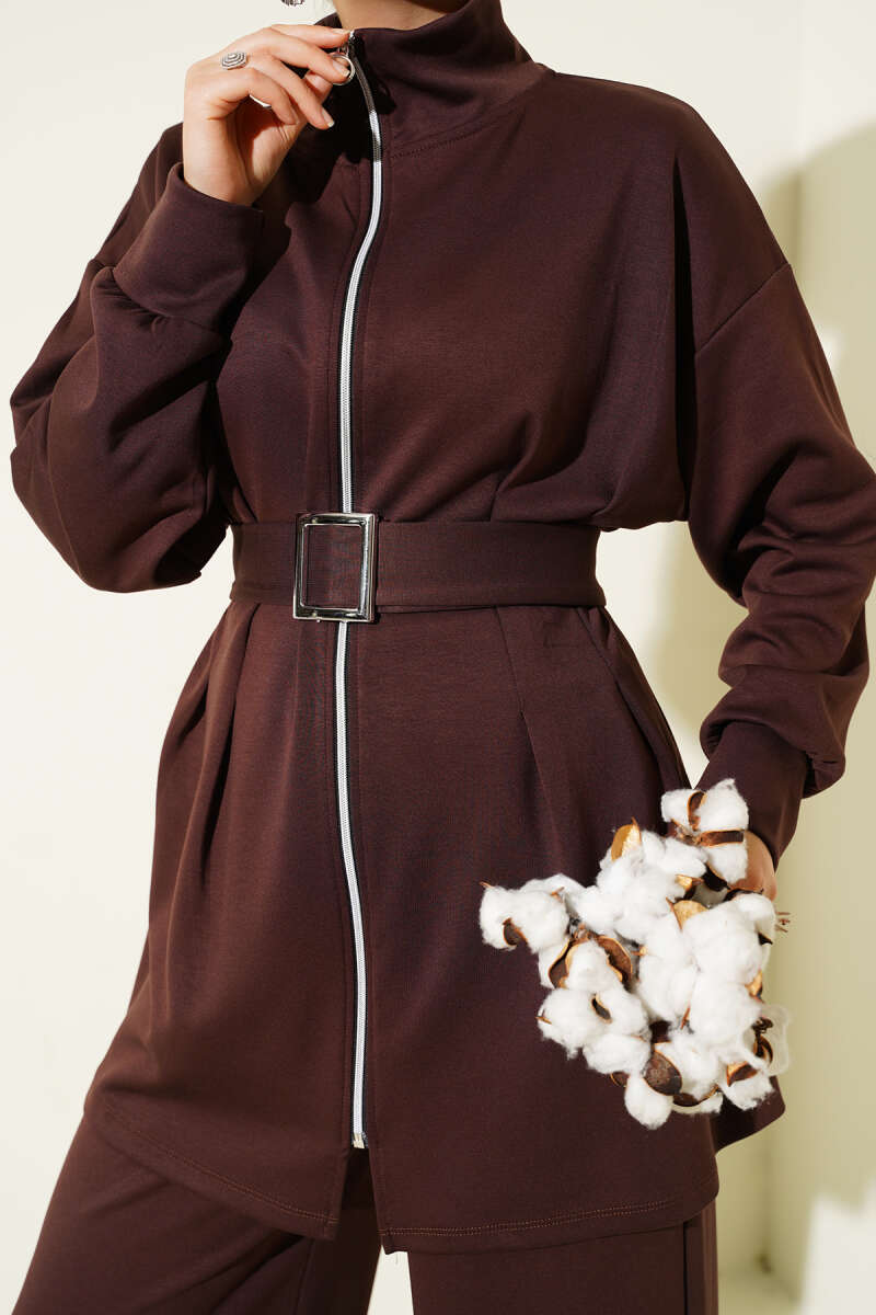 Loyşa Kemer Detaylı İkili Takım Kahve