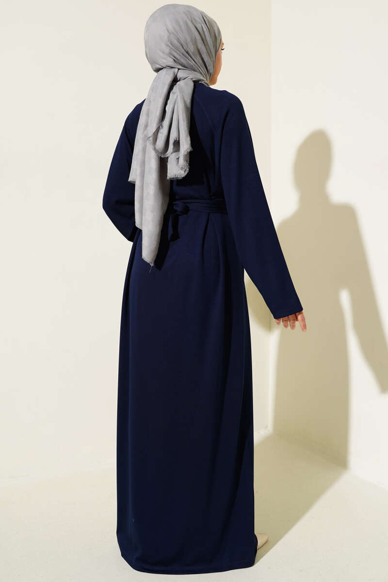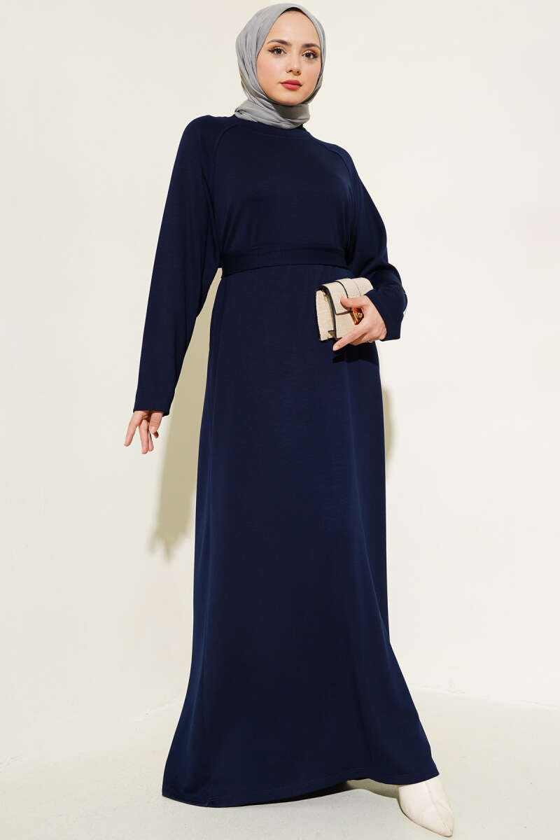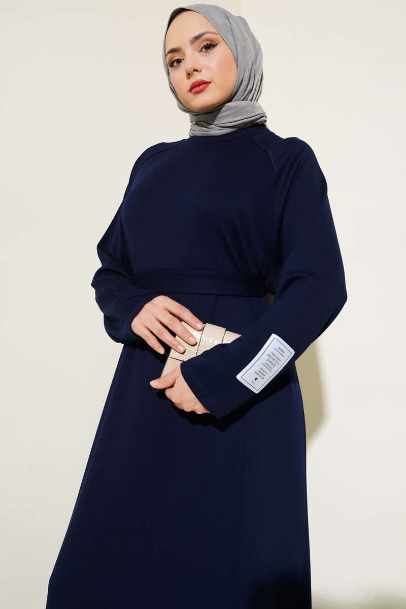 Scuba Pens Detaylı Kemerli Elbise Lacivert