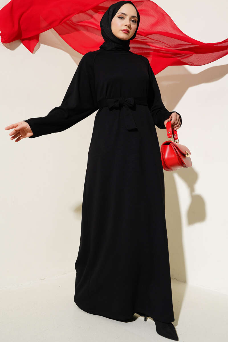 Bel Lastikli Elbise Siyah