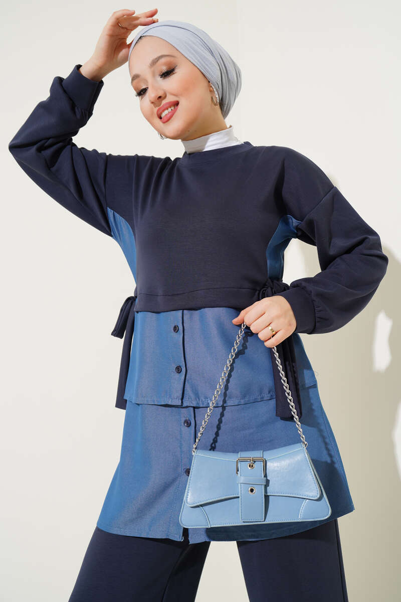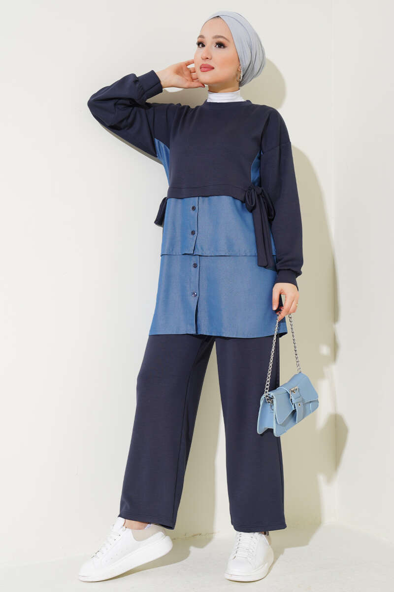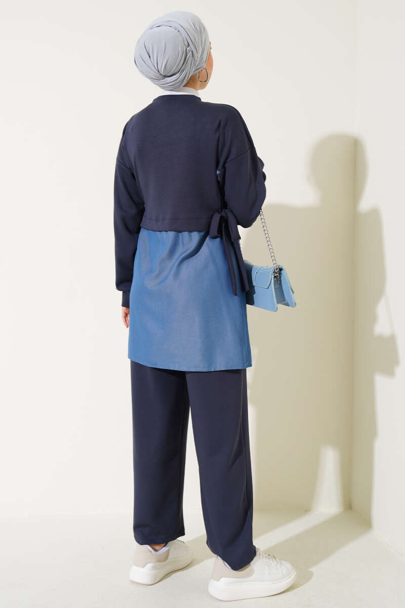 Loyşa Kot Garnili Bağlamalı İkili Takım Füme