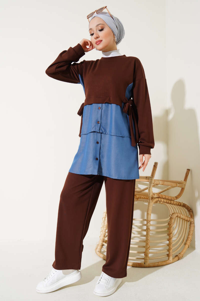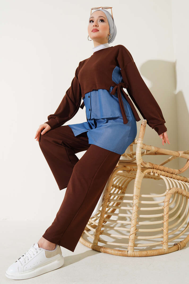 Loyşa Kot Garnili Bağlamalı İkili Takım Kahve