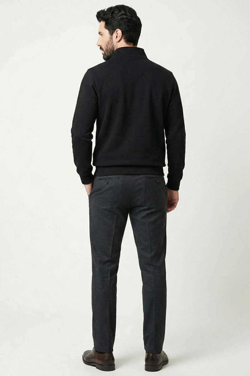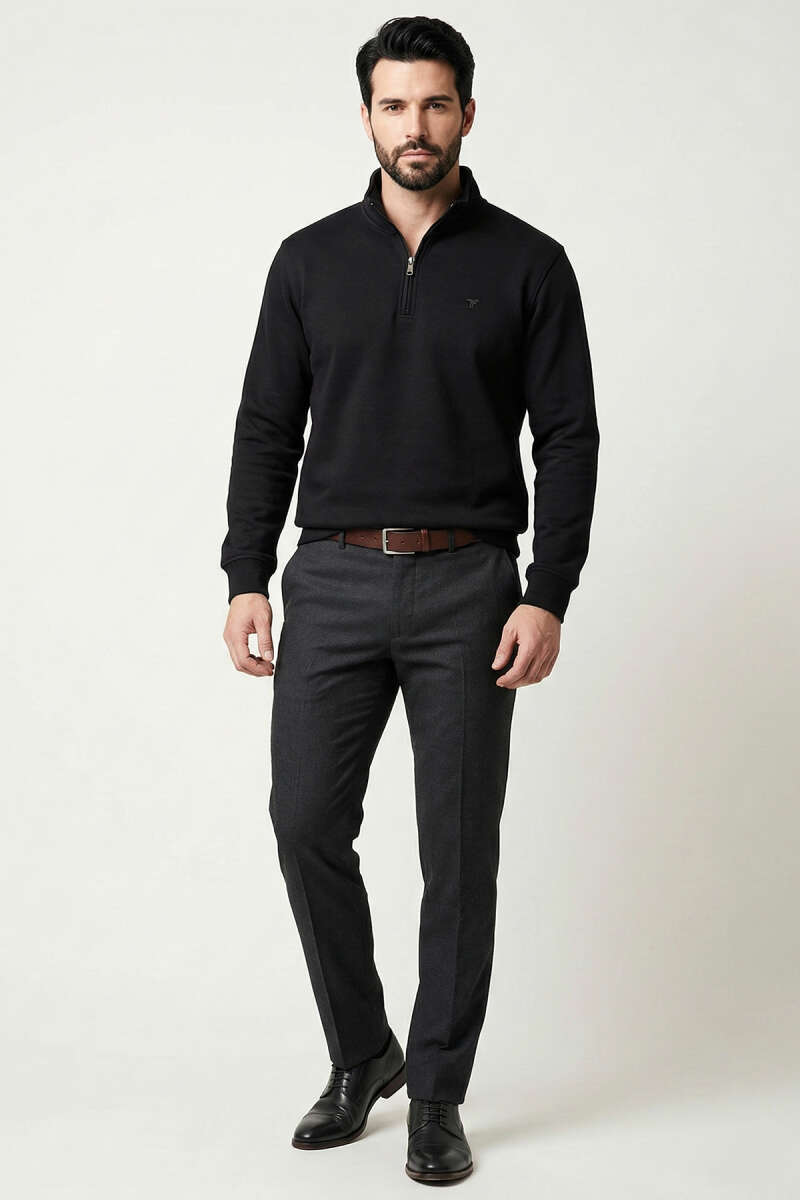 Loyşa Kumaş Yarım Fermuar Erkek Sweatshirt Siyah