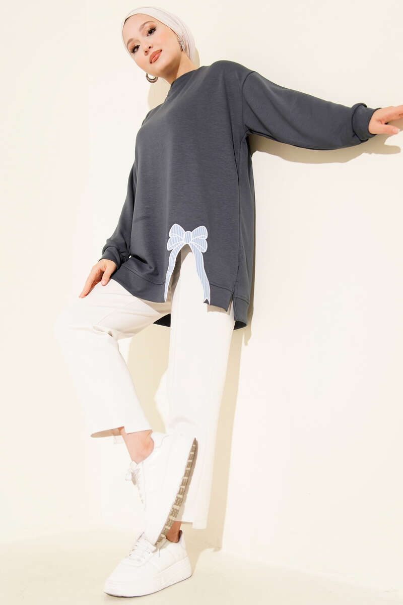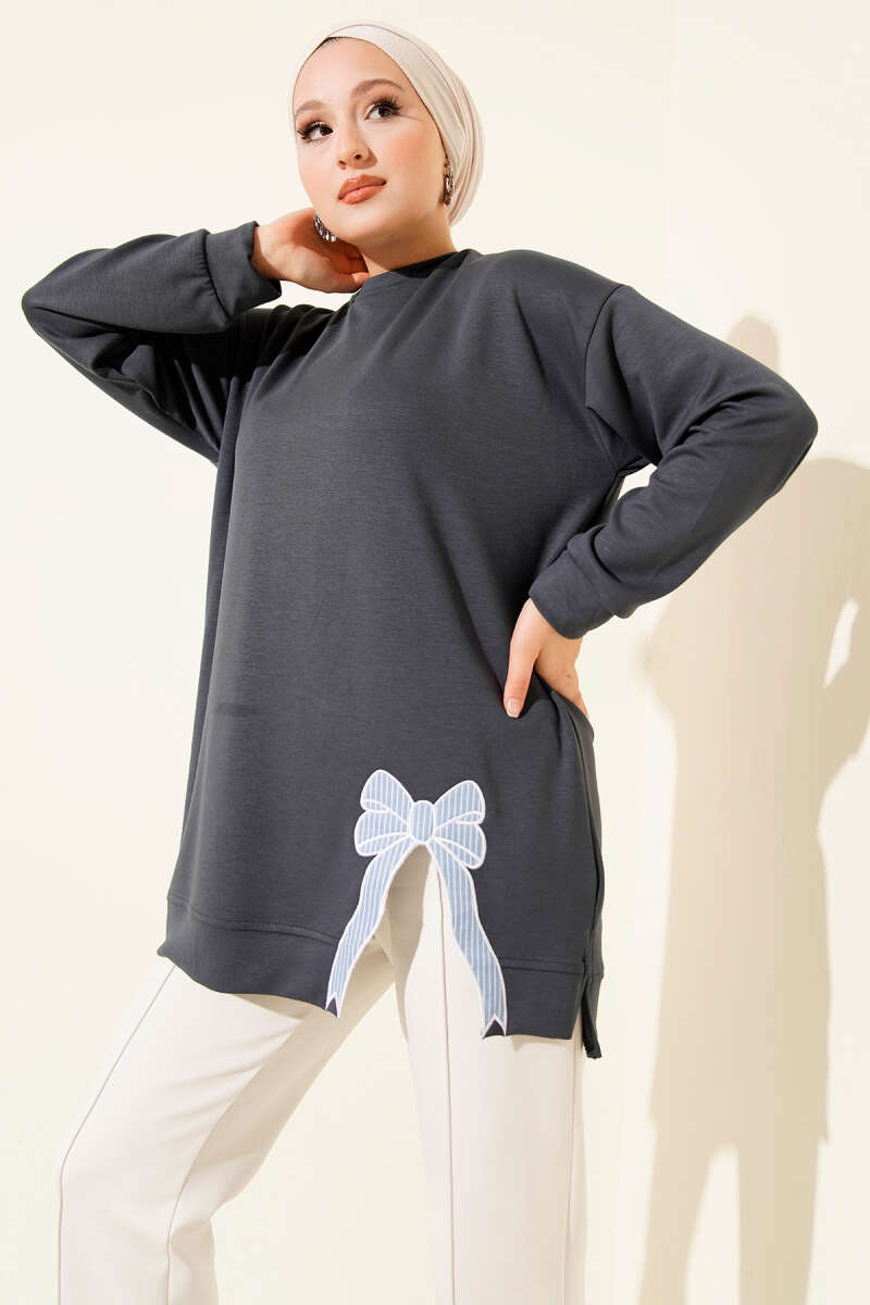 Loyşa Kurdele Nakış Detaylı Tunik Füme