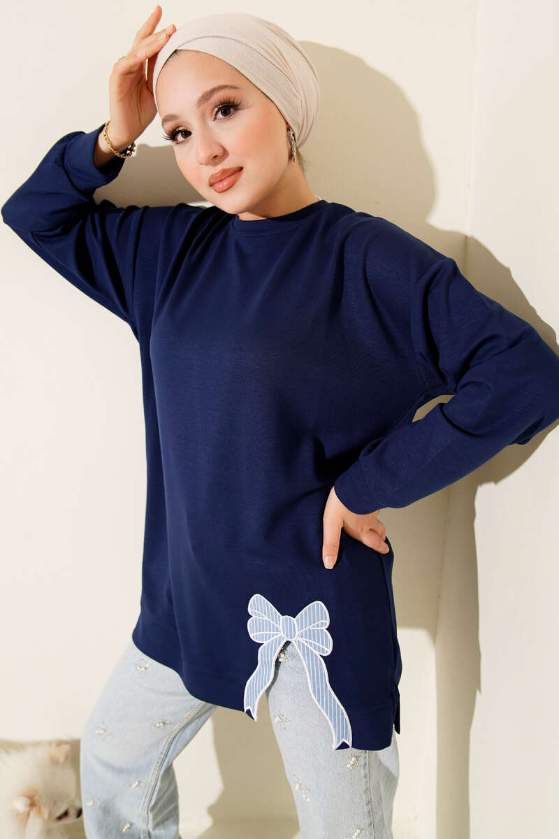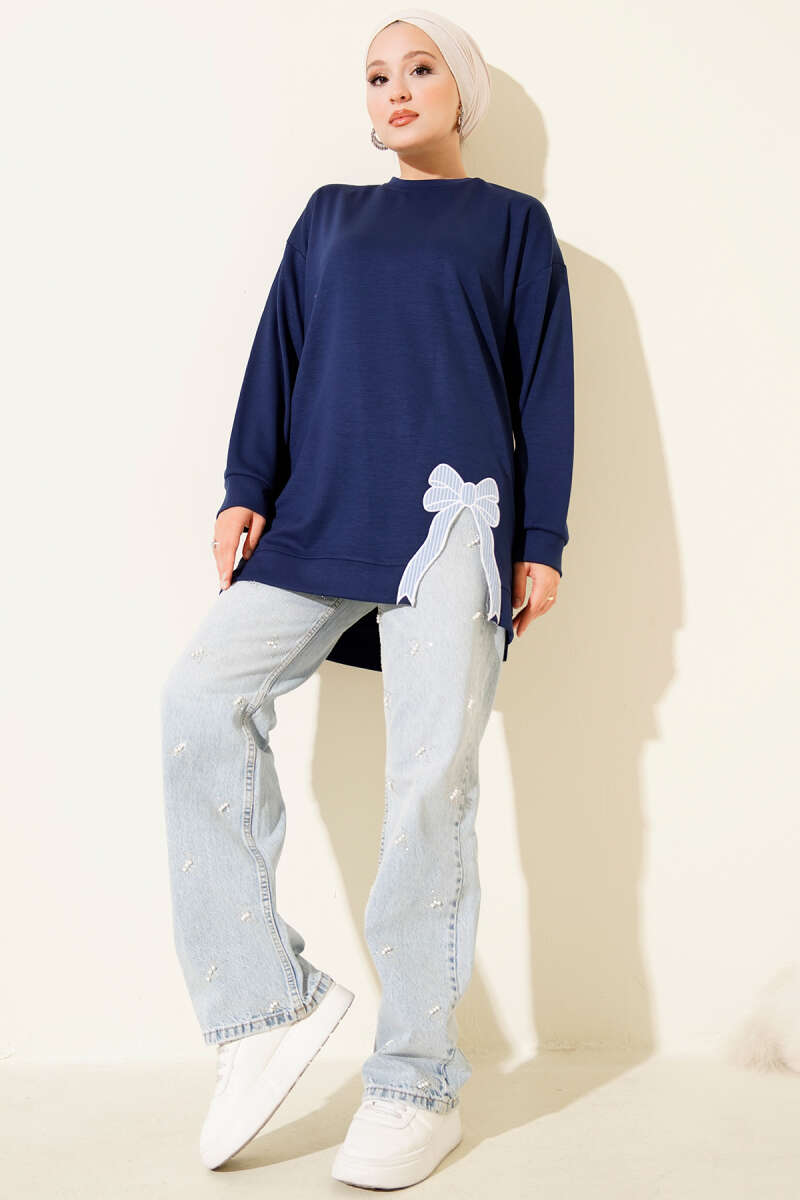 Loyşa Kurdele Nakış Detaylı Tunik Lacivert