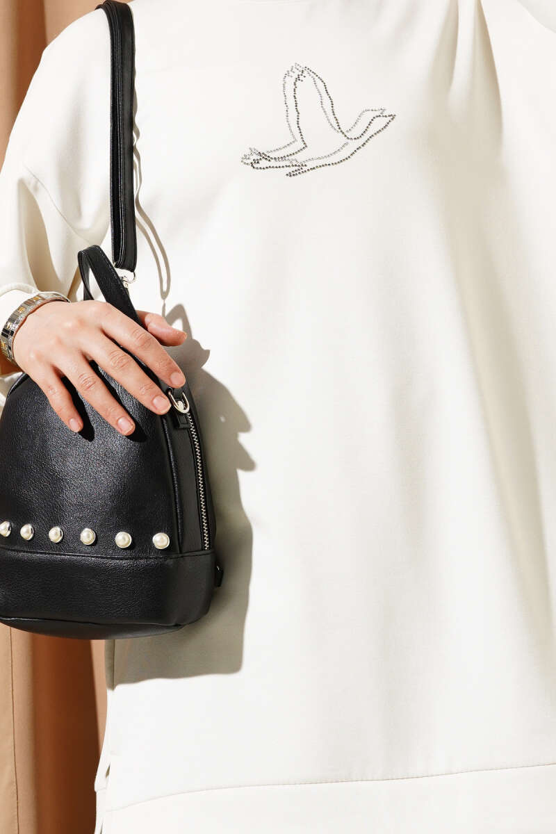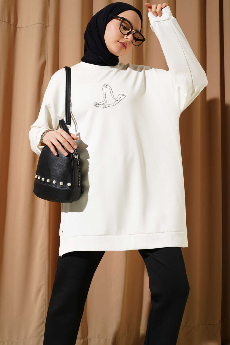 Loyşa Kuş Taşlı Tunik Ekru