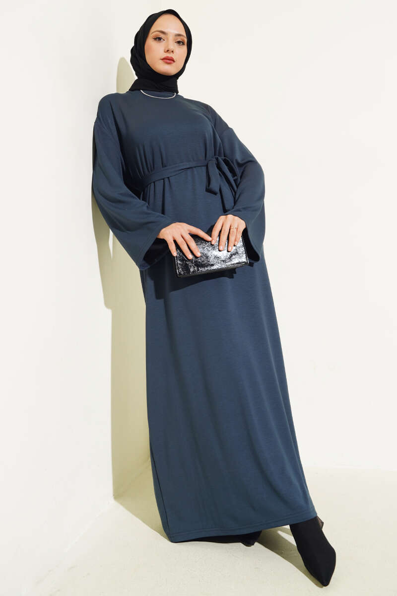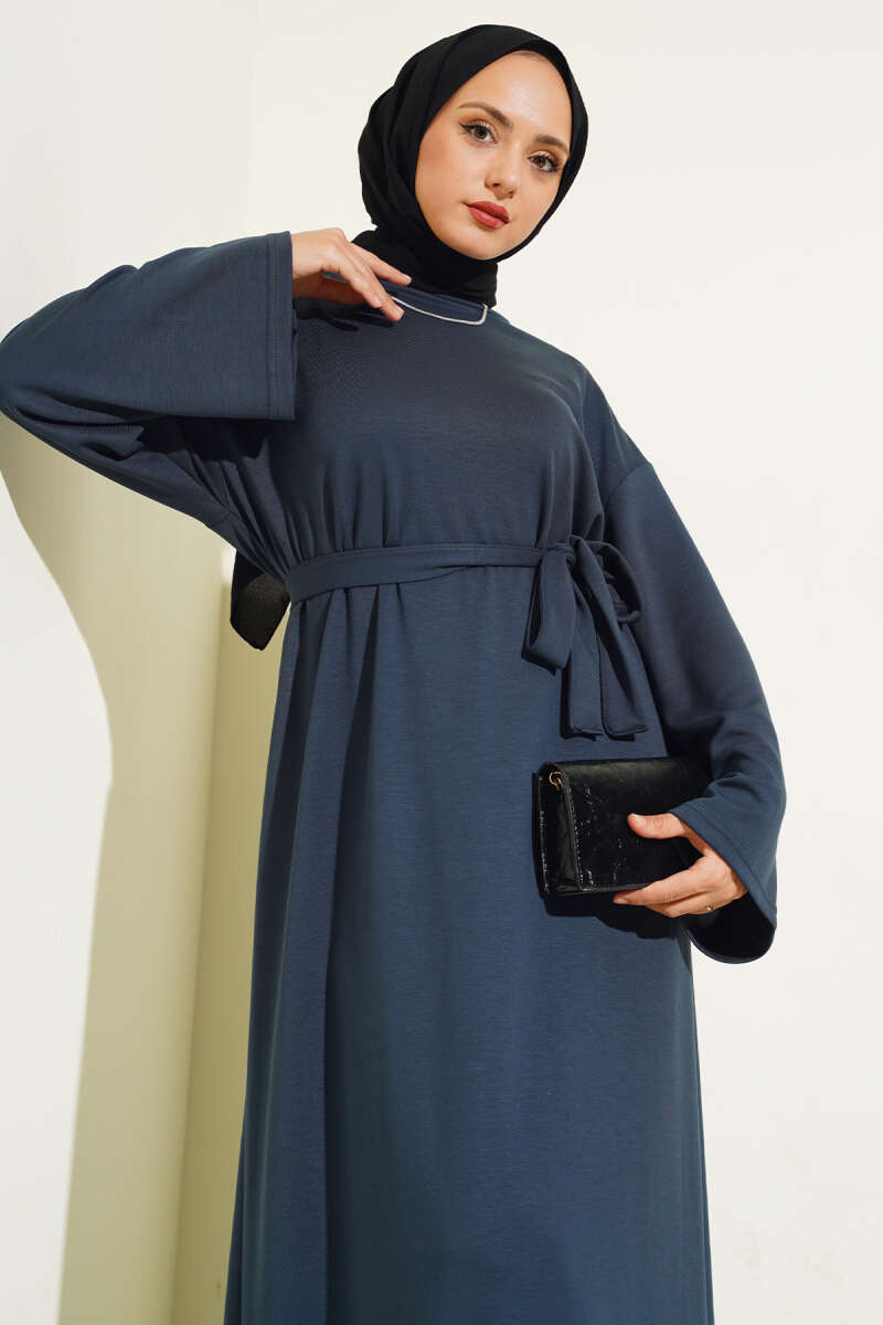 Saç Örgü Kabartmalı Triko Elbise İndigo