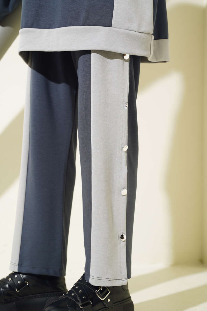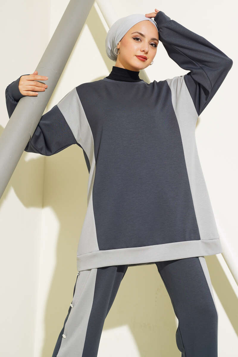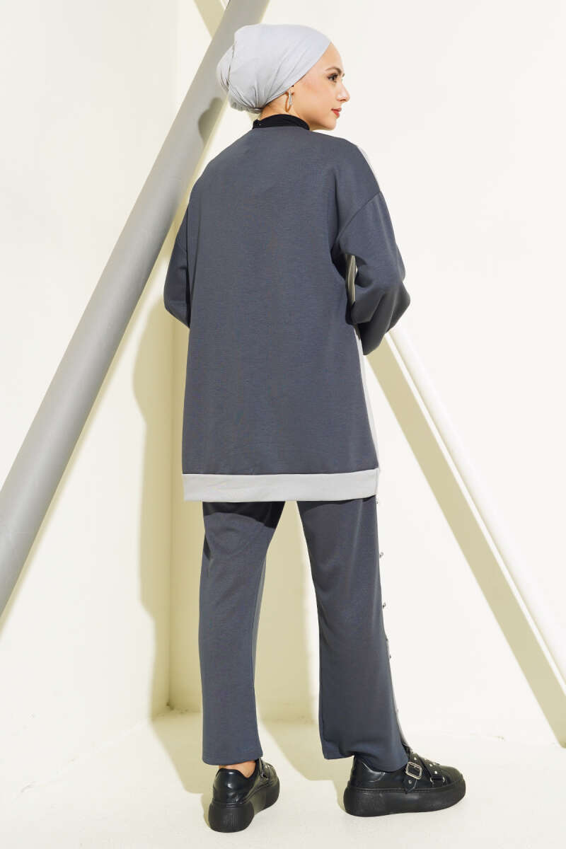 Taş Detaylı Yarım Fermuarlı İkili Takım Siyah