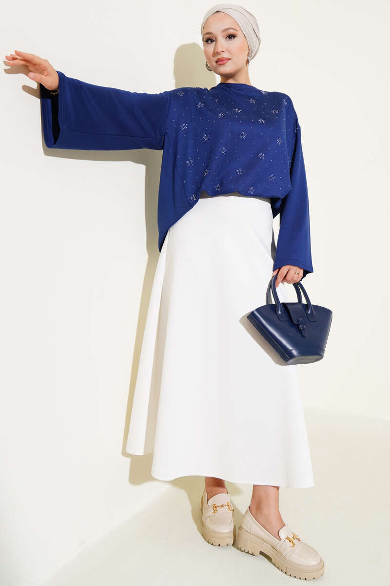 Beli Lastikli Kloş Basic Etek Beyaz