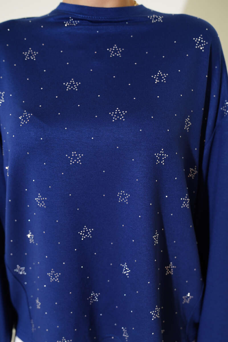 Kabartma Desen Yumoş Triko Tunik Lacivert