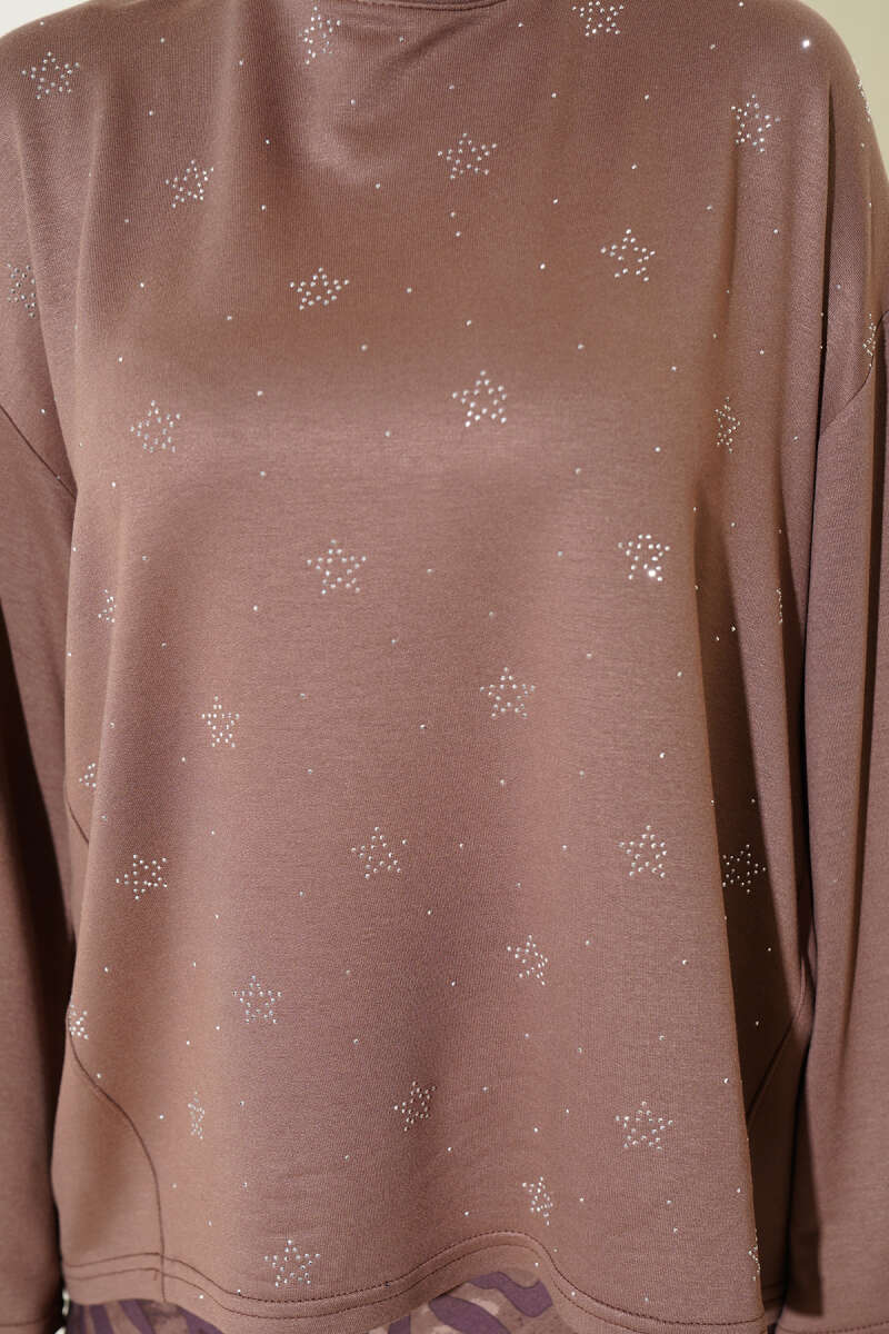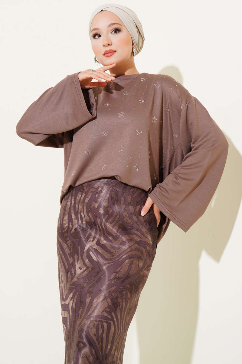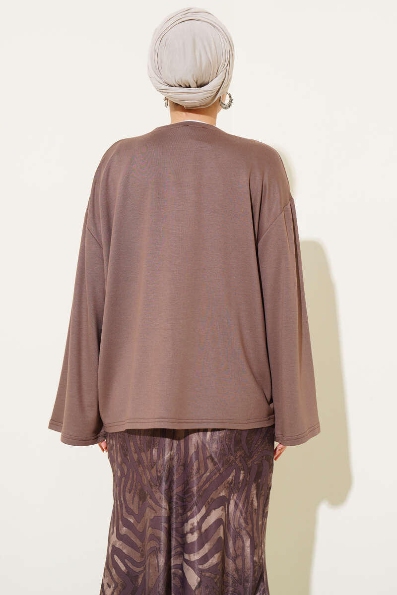Bilek İpli Fitilli Kaşe Tunik Kahve