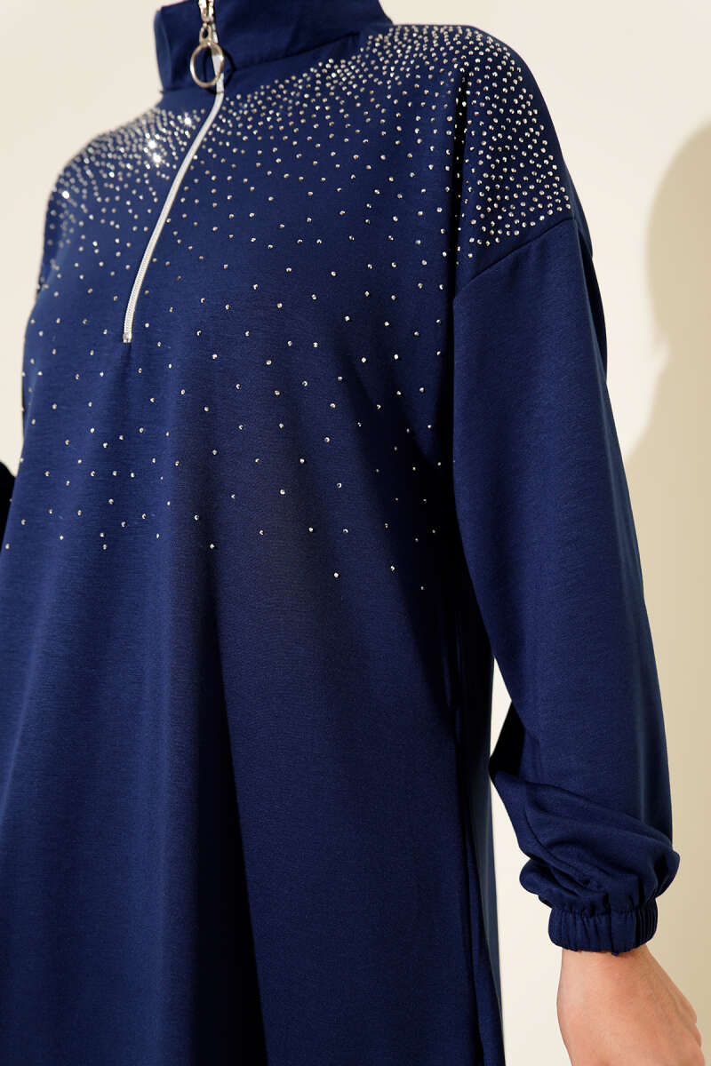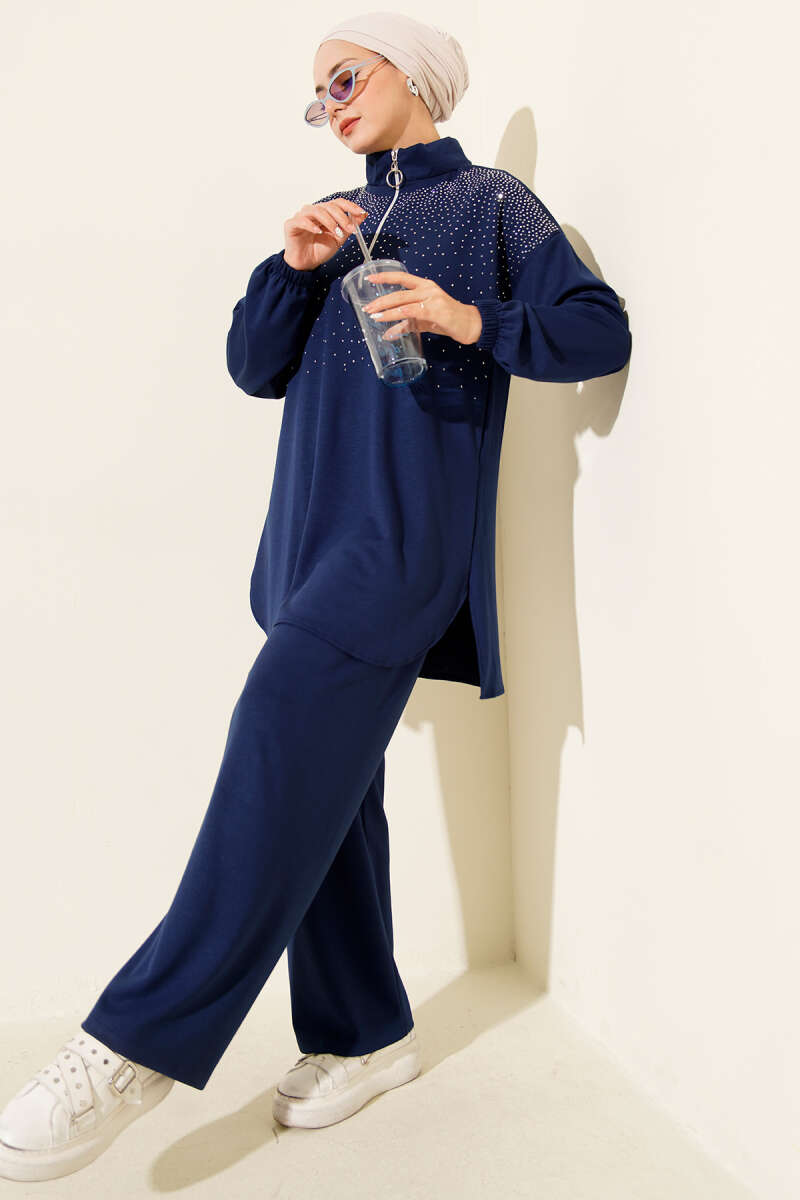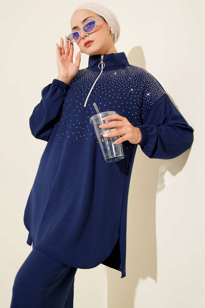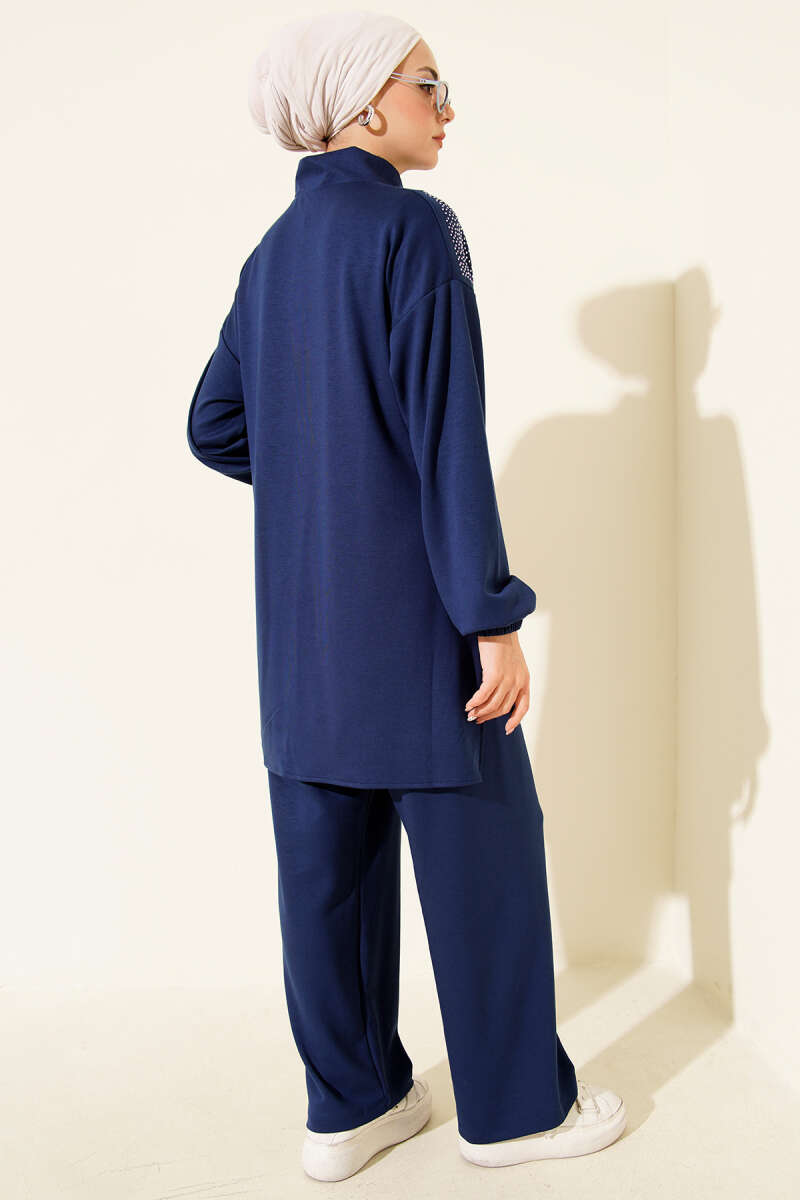 Loyşa Omuz Taşlı Fermuarlı İkili Takım İndigo