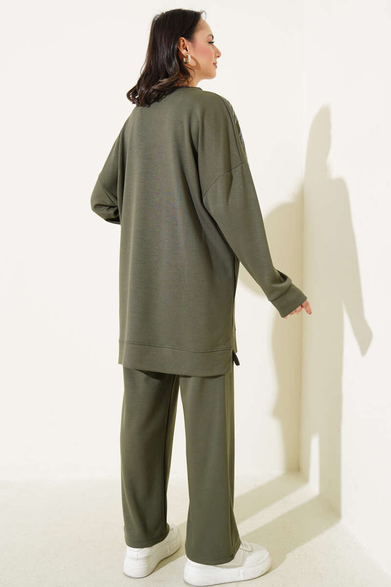 Denizci Yaka Dantelli Tunik İkili Takım Kahve