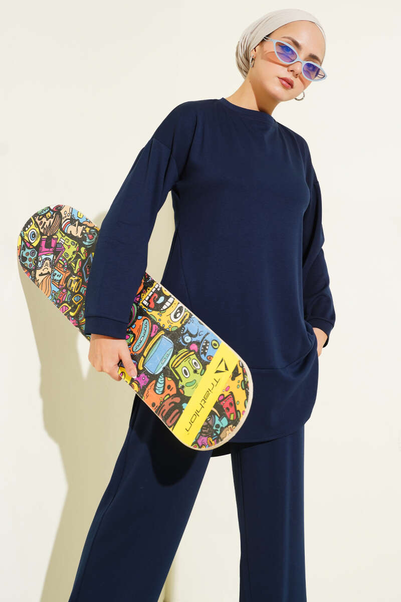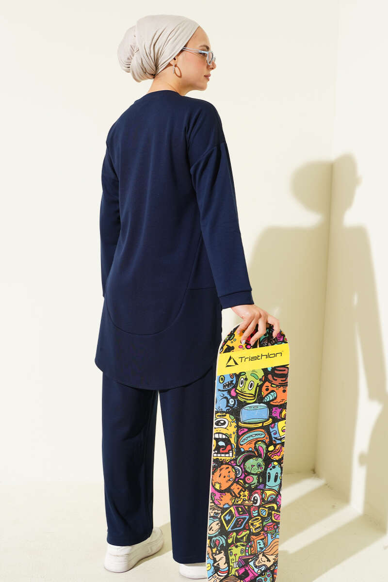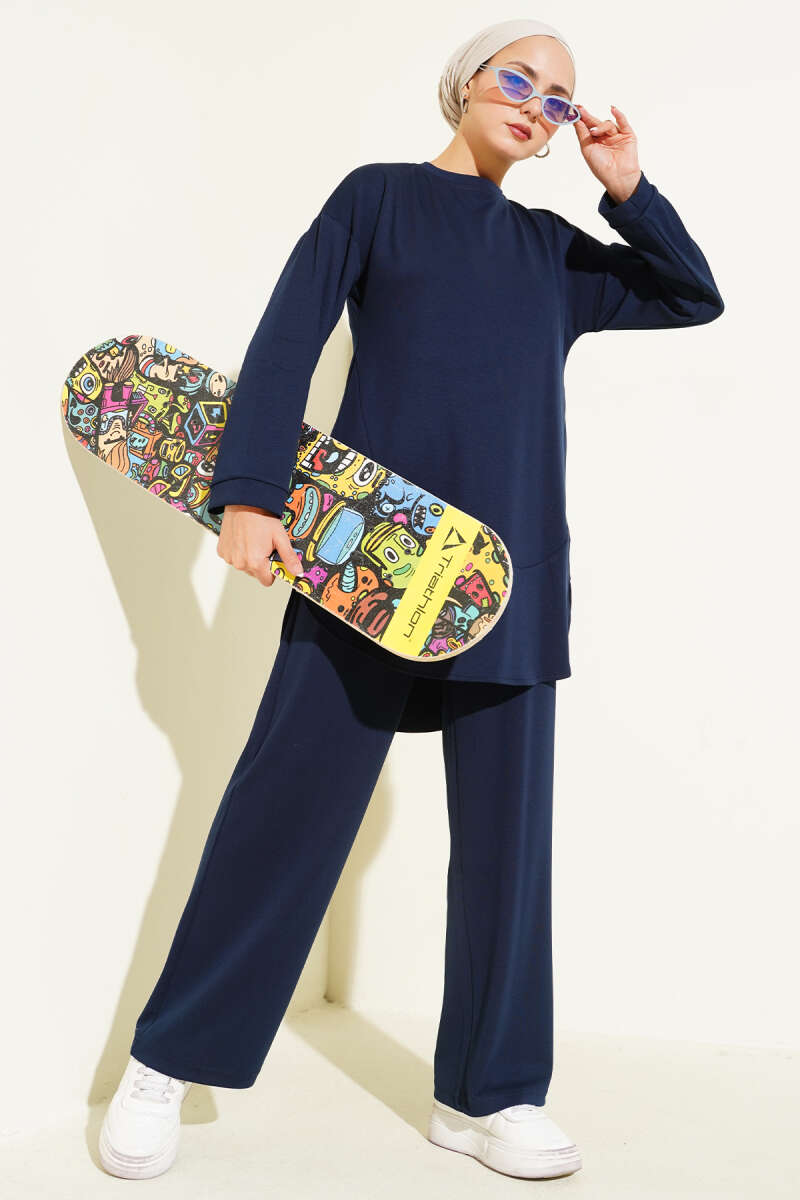 Bel Lastikli Düğmeli İkili Takım Lacivert