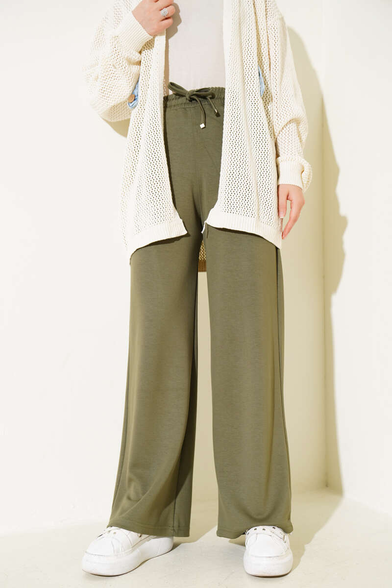 Yanı Biyeli Bel Lastikli Pantolon Haki