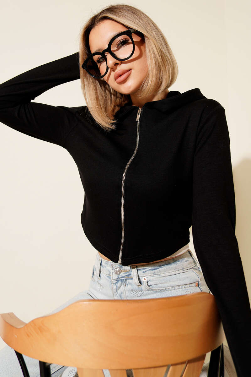 Loyşa Parmak Geçirmeli Crop Hırka Ekru