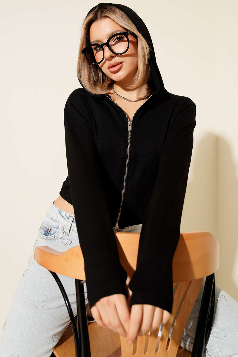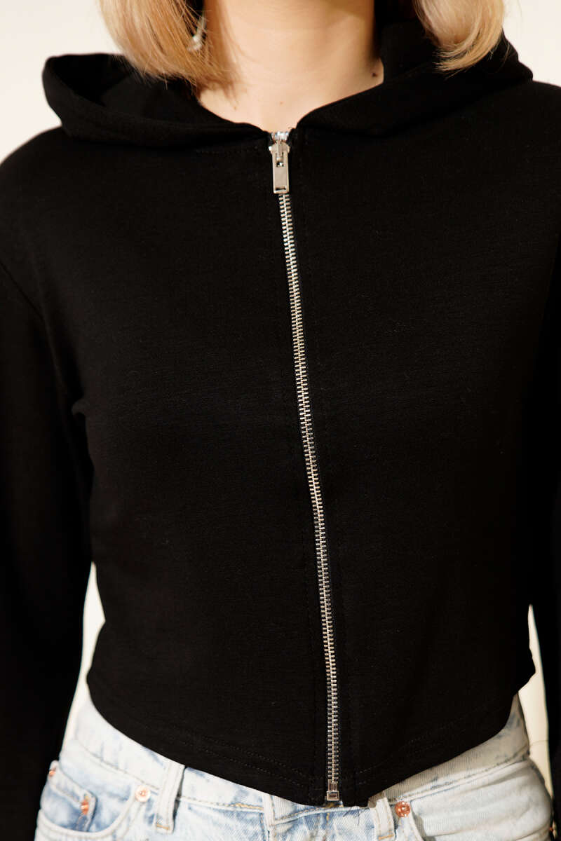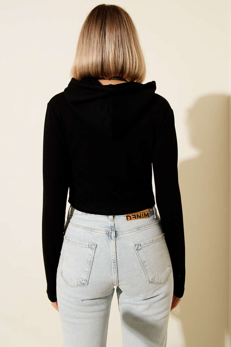 Yanları Çıtçıtlı Şardonlu Sweatshirt Siyah