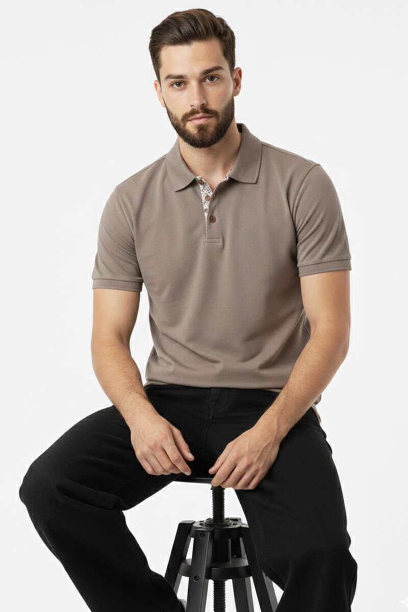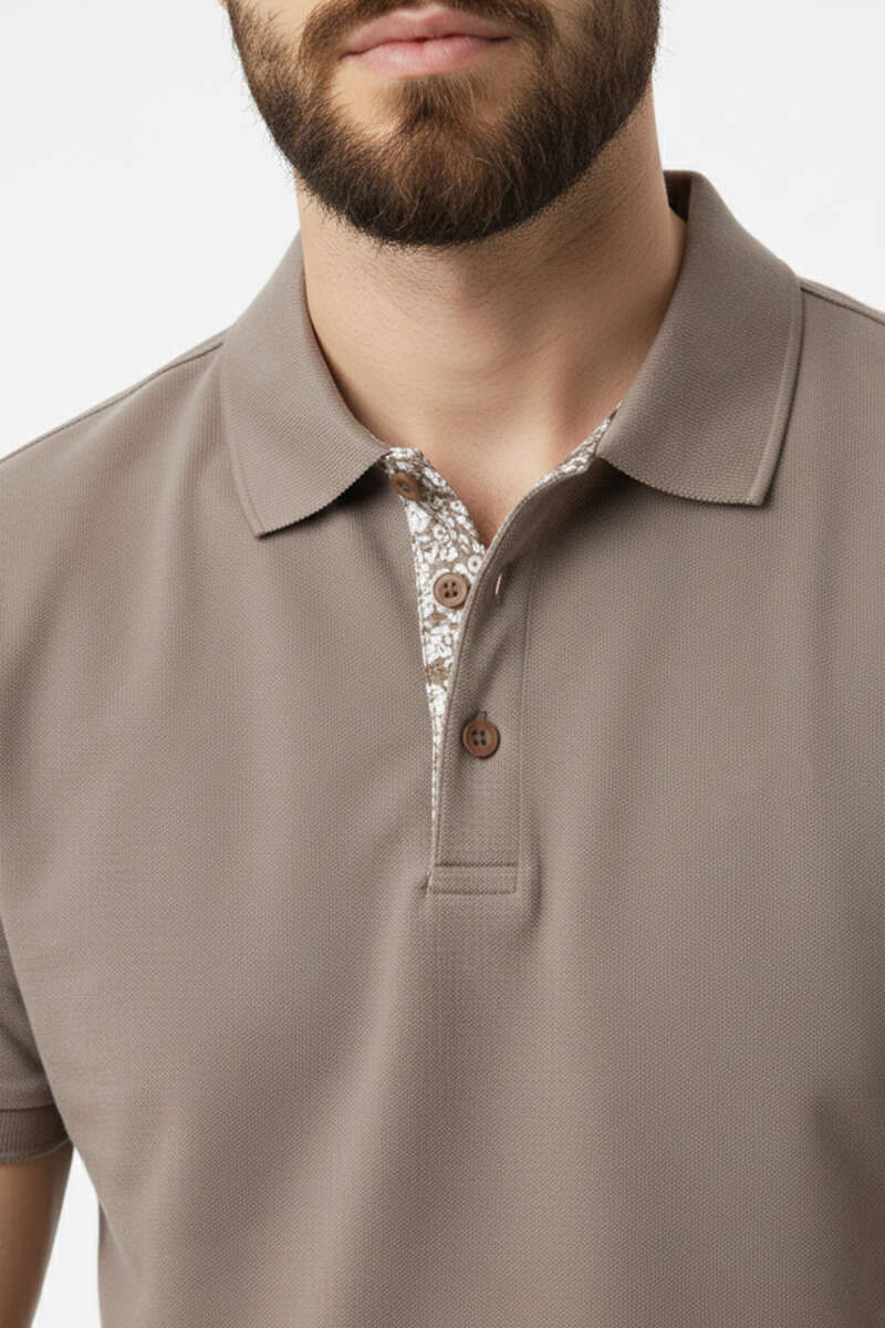 Loyşa Polo Yaka Düğmeli T-shirt Kahve