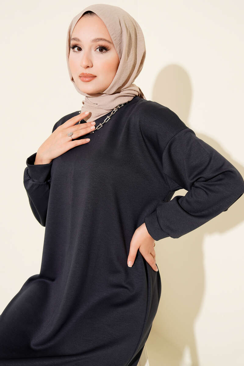Kolları Fiyonk Detaylı Selanik Elbise Taş