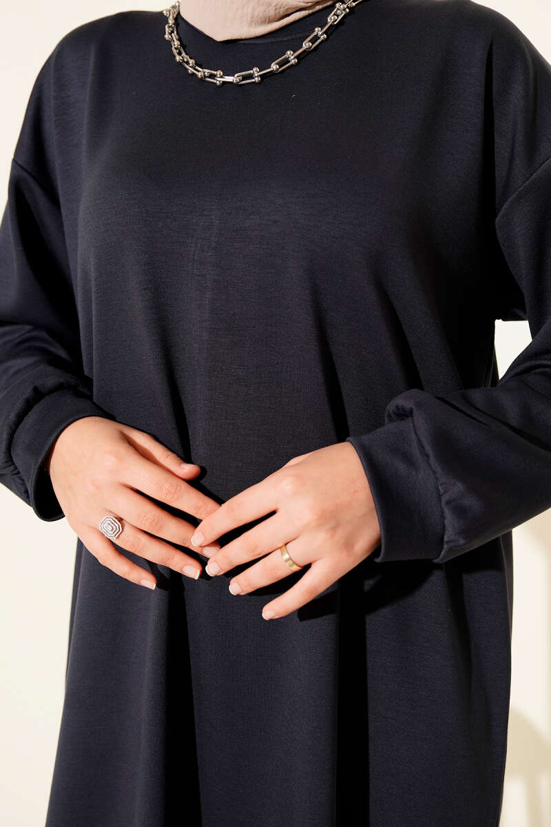Kolları Fiyonk Detaylı Selanik Elbise Siyah