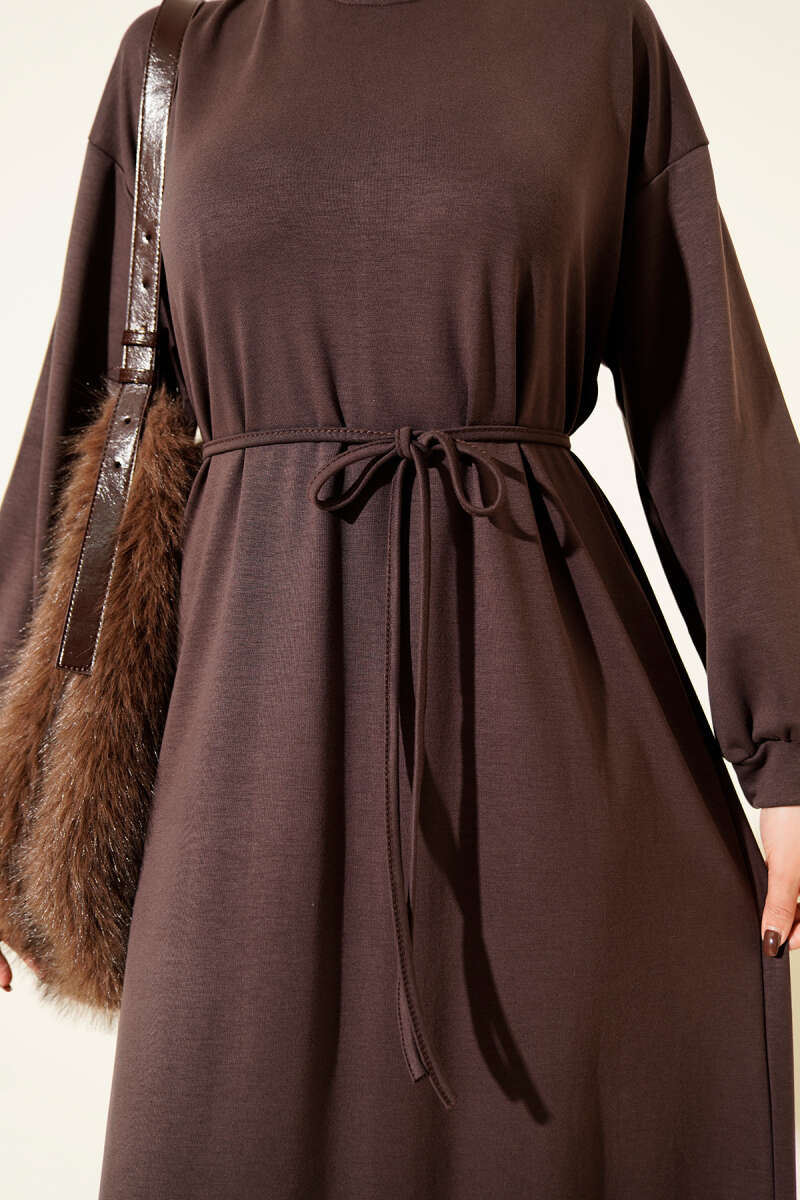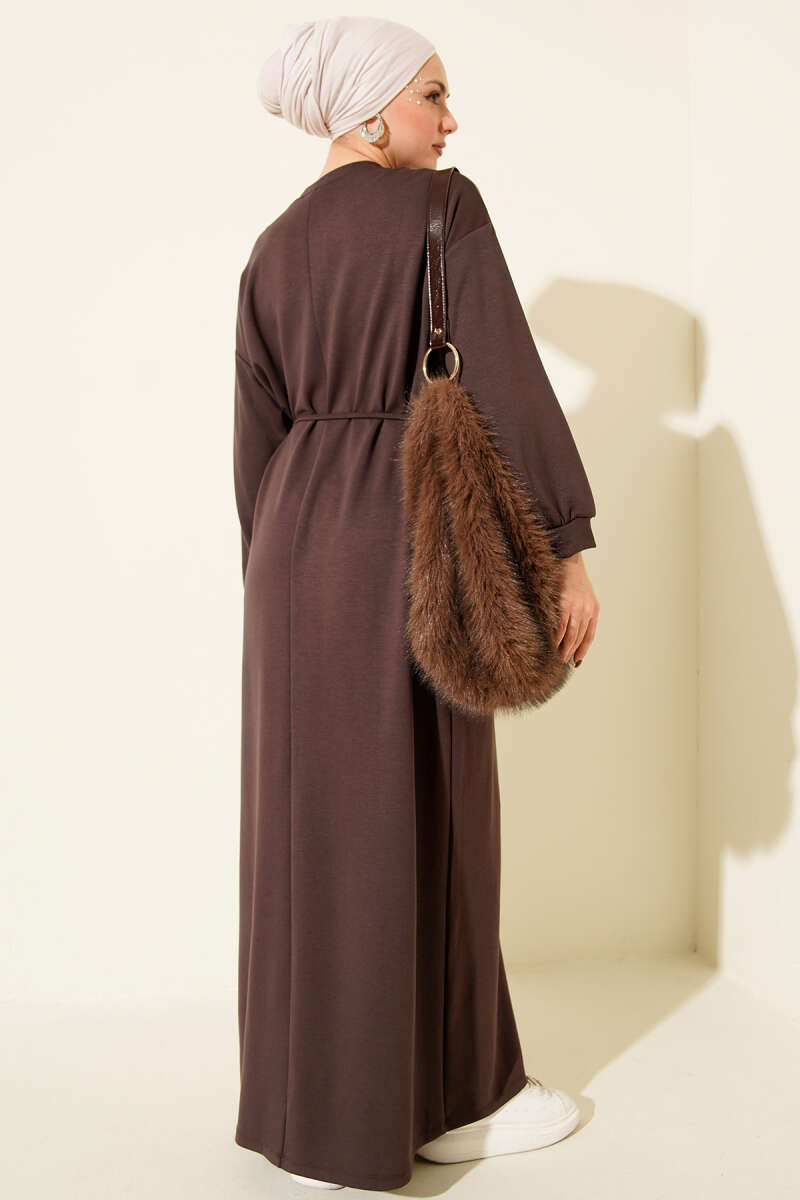 Bel Taşlı Pelerinli Abiye Elbise Kahve