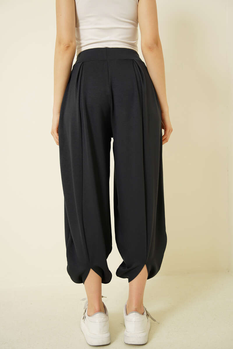 Geniş Paçalı Ağaç Kabuğu Pantolon Füme