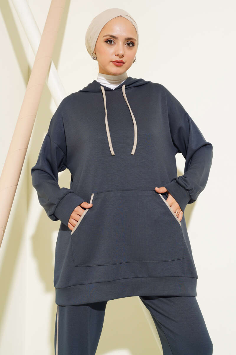Kapüşonlu Fermuarlı Salaş Hırka Füme