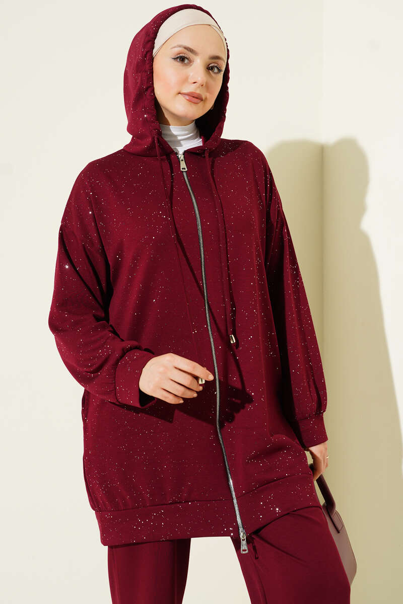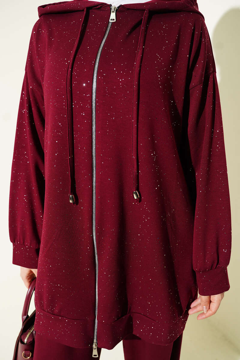 Loyşa Sim Detaylı Kapüşonlu İkili Takım Kahve