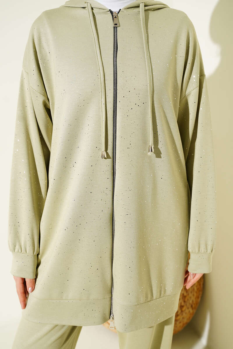 Loyşa Sim Detaylı Kapüşonlu İkili Takım Kahve