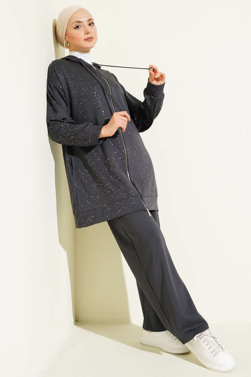 Loyşa Sim Detaylı Kapüşonlu İkili Takım Kahve
