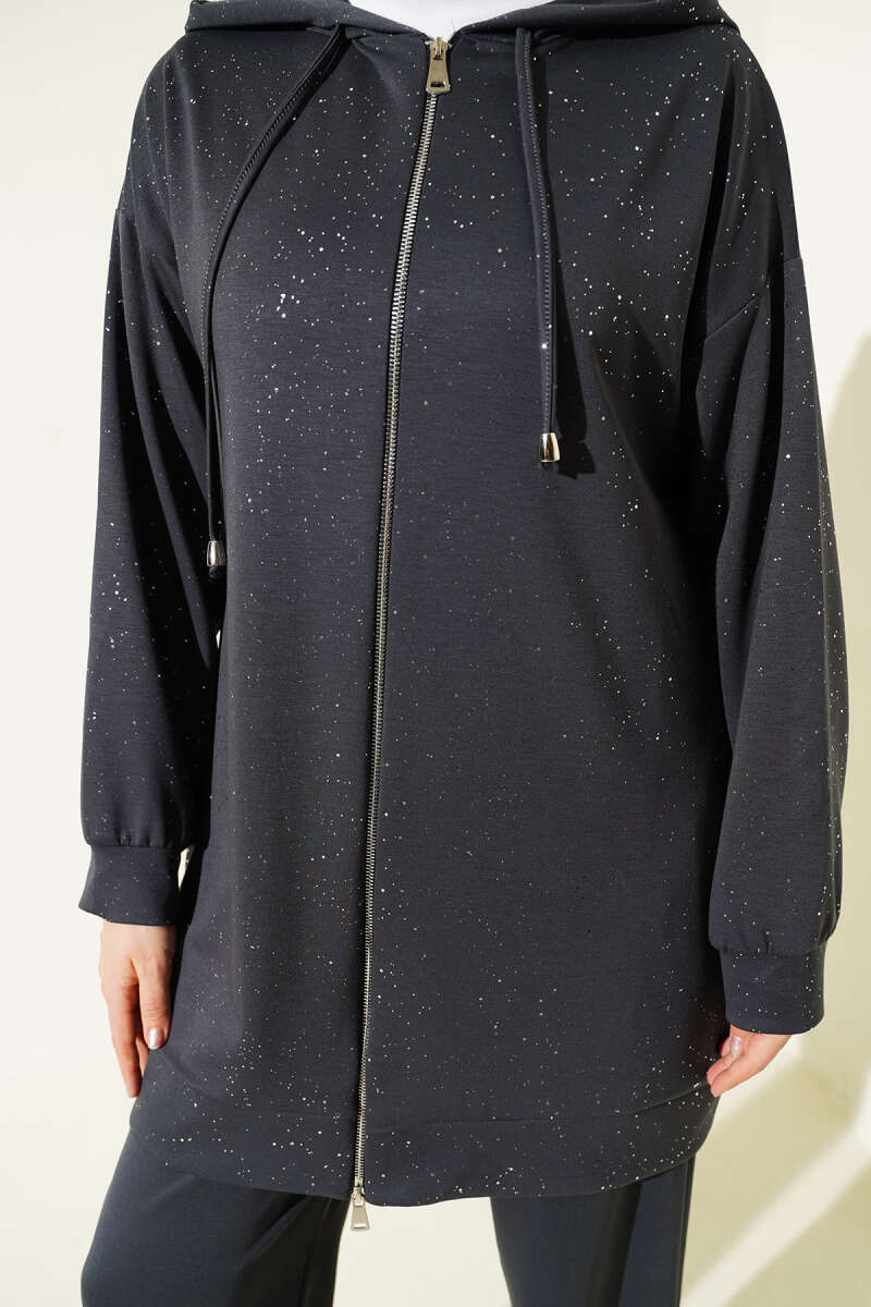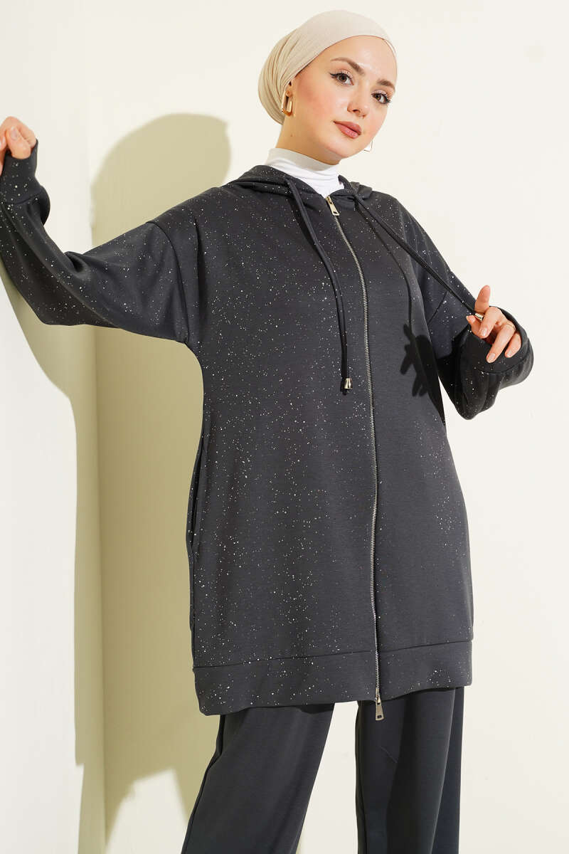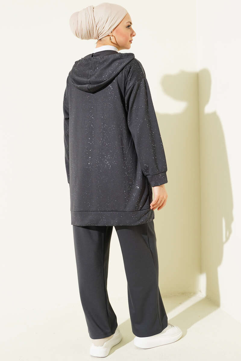 Loyşa Sim Detaylı Kapüşonlu İkili Takım Siyah