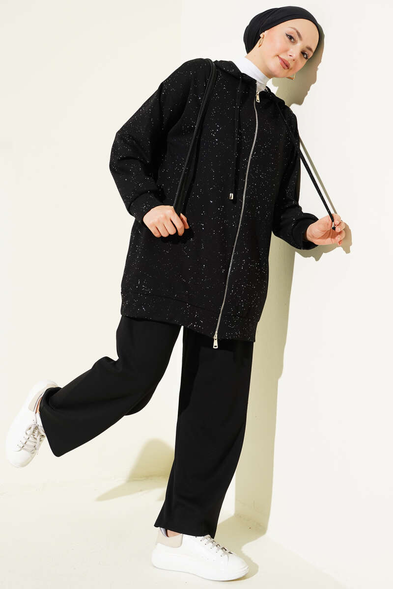 Loyşa Sim Detaylı Kapüşonlu İkili Takım Kahve