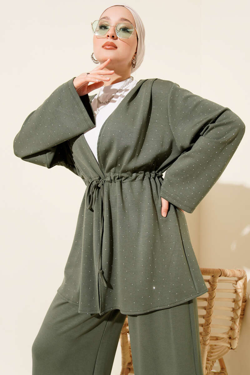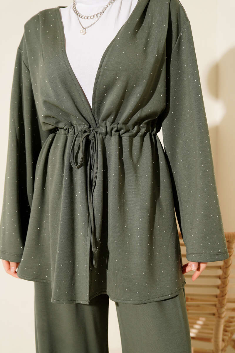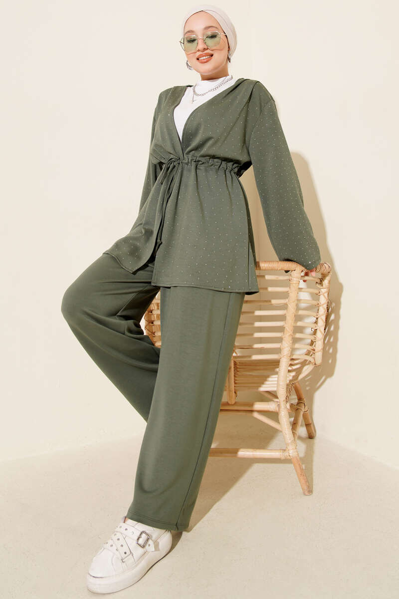 Loyşa Taşlı Bel Tünelli İkili Takım Kahve